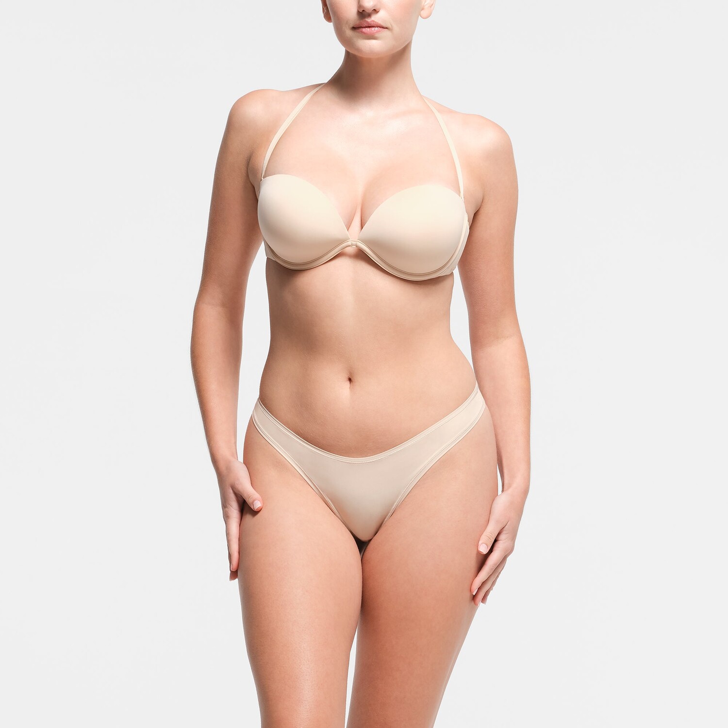 Одно решение для всех ваших потребностей. Этот революционный бюстгальтер на косточках с легкой подкладкой оснащен четырьмя петлями для лямок и съемными лямками, которые можно отрегулировать для ношения 30 различными способами — с любым вырезом и для любого случая. Имеет глубокий вырез, внутреннюю силиконовую технологию для максимального сцепления и боковые косточки для дополнительной поддержки. Вот некоторые из способов ношения: халтер, без бретелек, одно плечо, крест-накрест и многие другие. Сочетайте съемную регулируемую лямку по центру спины с удлинителем бюстгальтера, чтобы он был невидимым под моделями с низкой спиной. Подходит точно по размеру вашего бюстгальтера SKIMS.