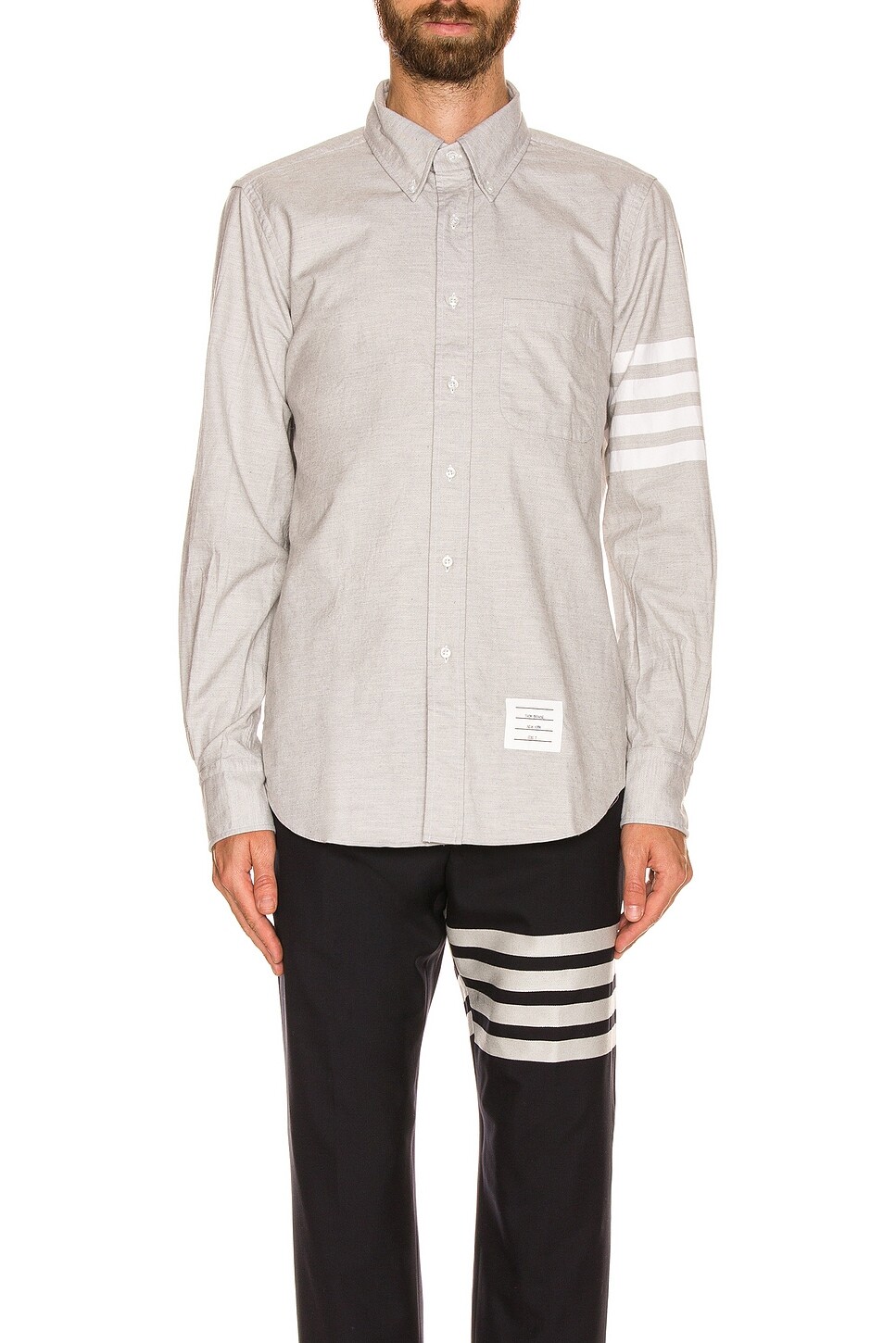 Рубашка прямого кроя с 4 полосками Thom Browne, цвет Medium Grey