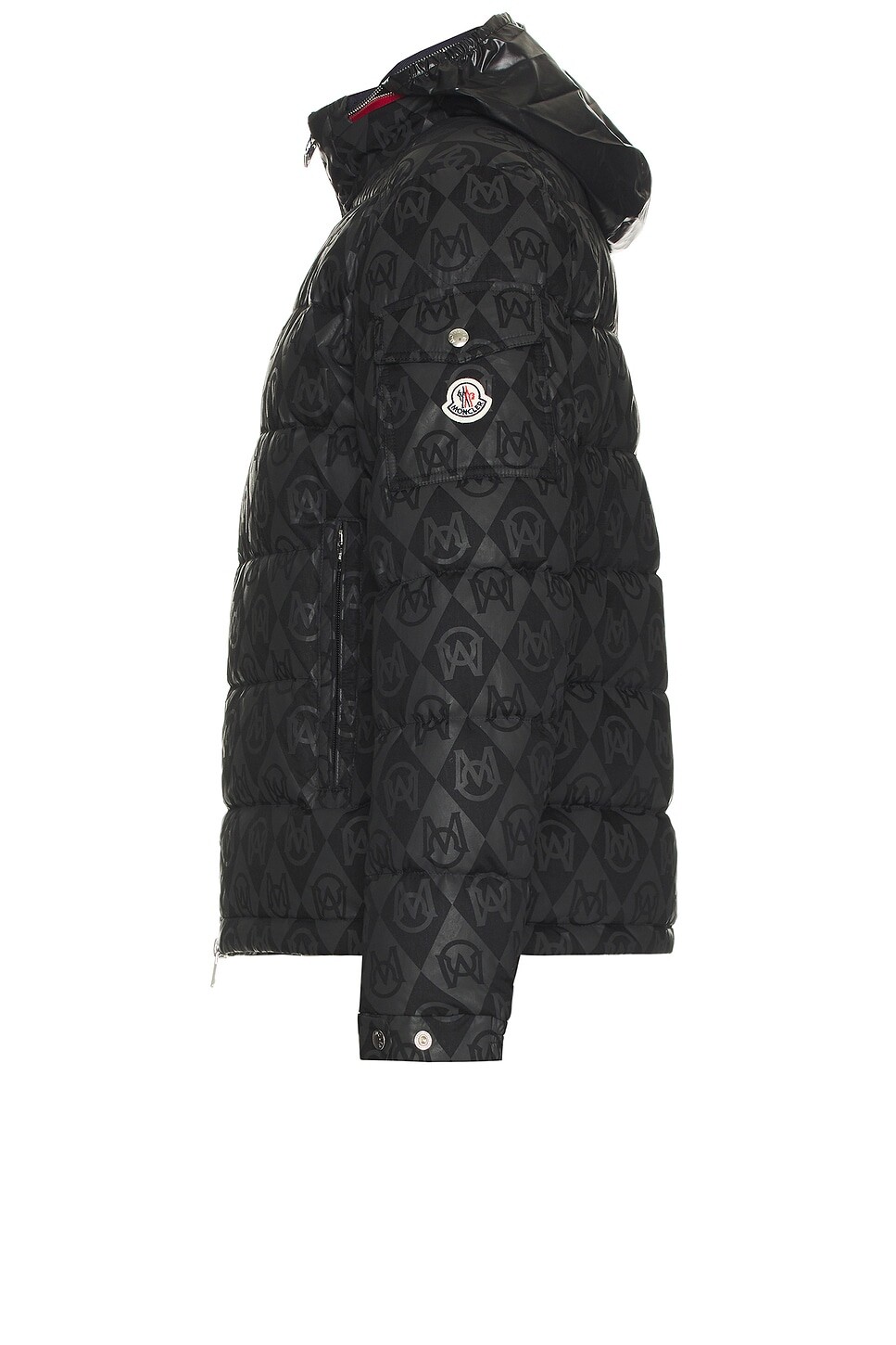 Рип-стоп средней плотности с логотипом Moncler в тон по всей поверхности и манжетами на кнопках