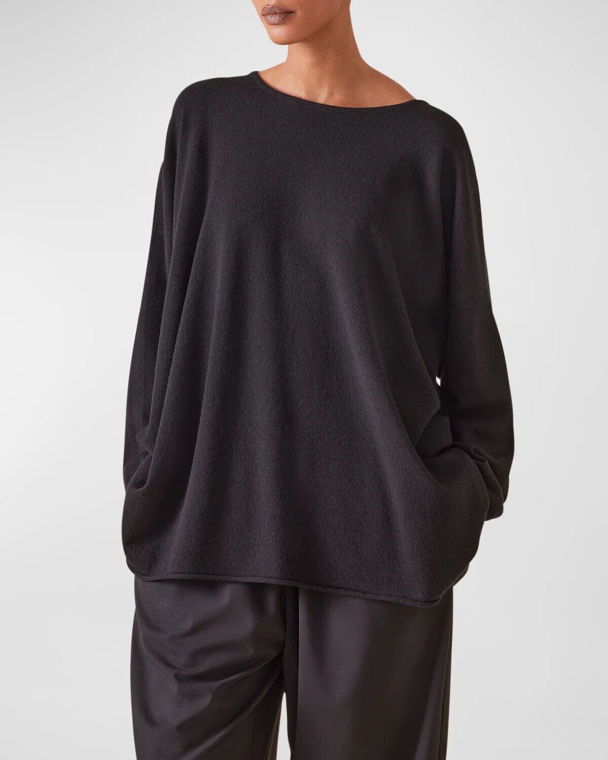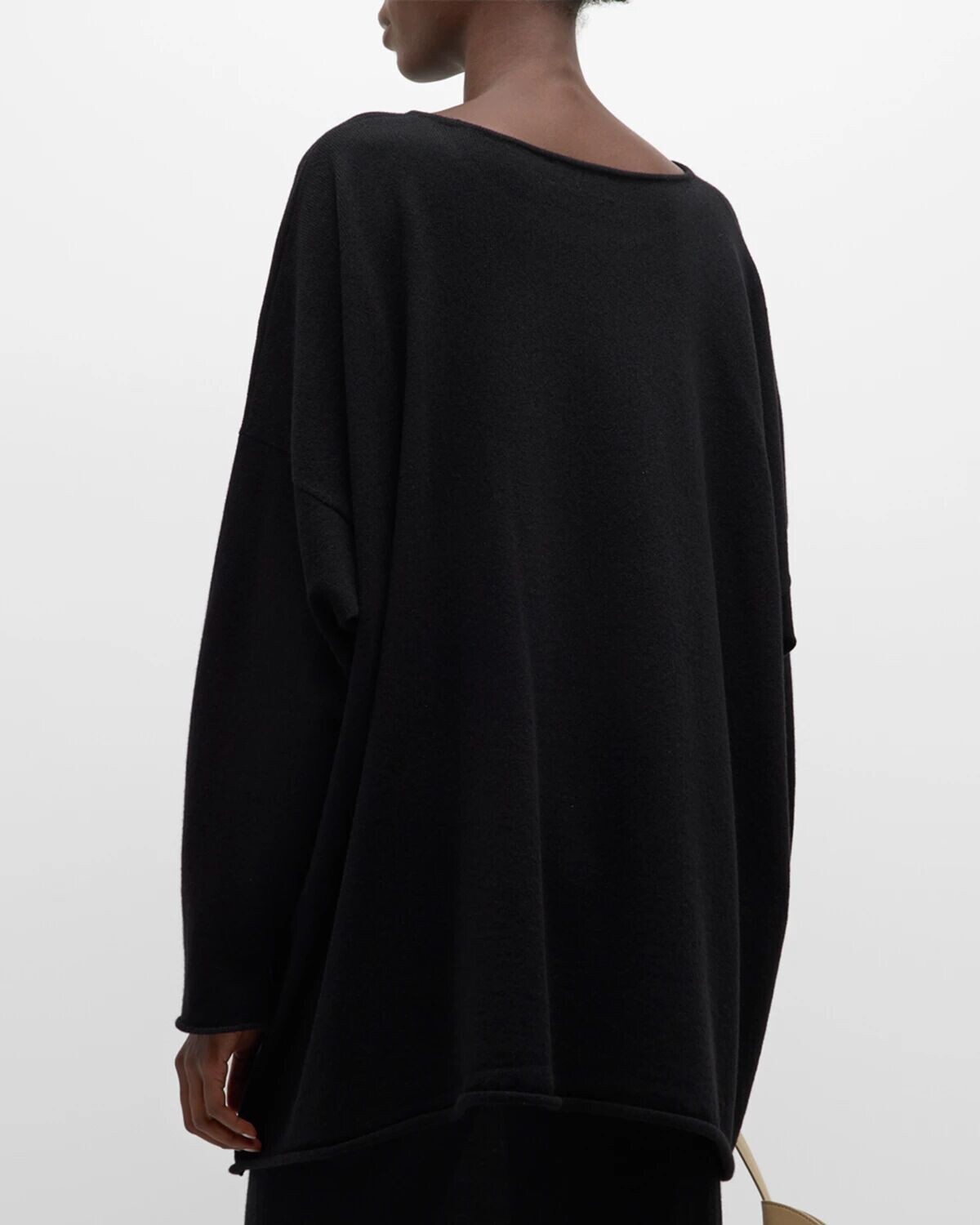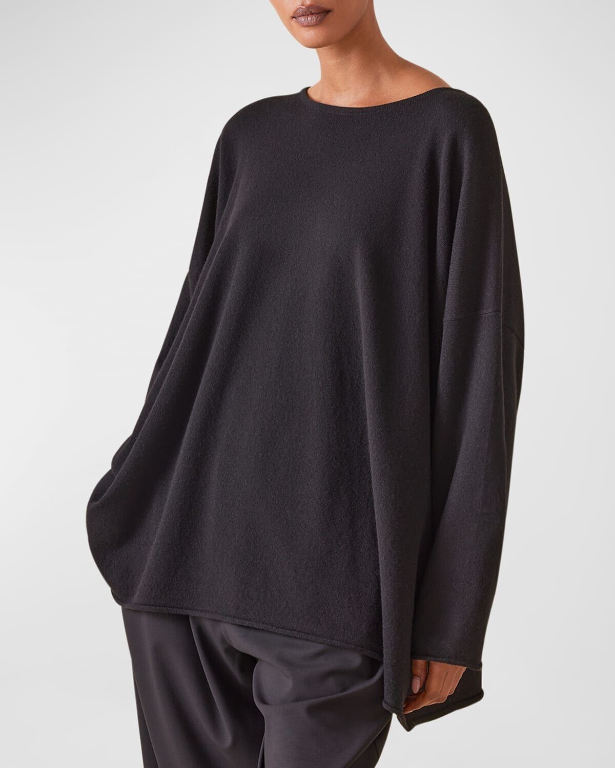 Свитер А-силуэта с вырезом «бато» (длинная длина) Eskandar, черный