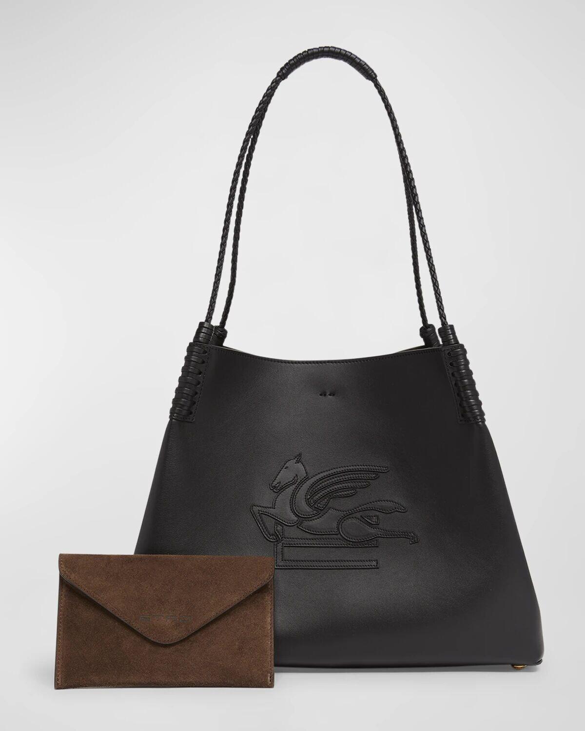 Кожаная сумка через плечо Libra для покупок Etro, черный
