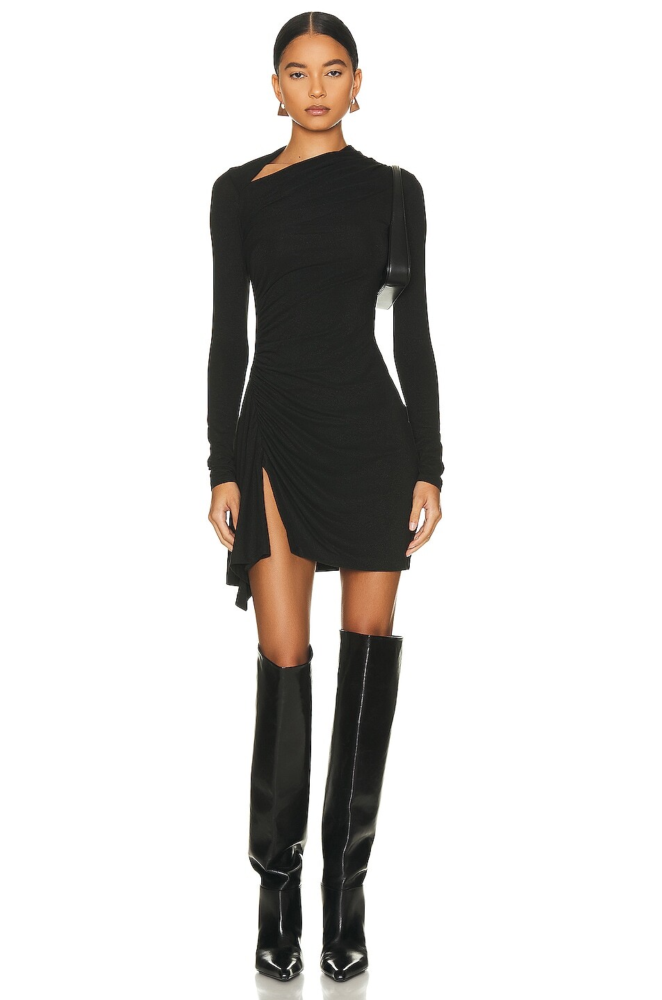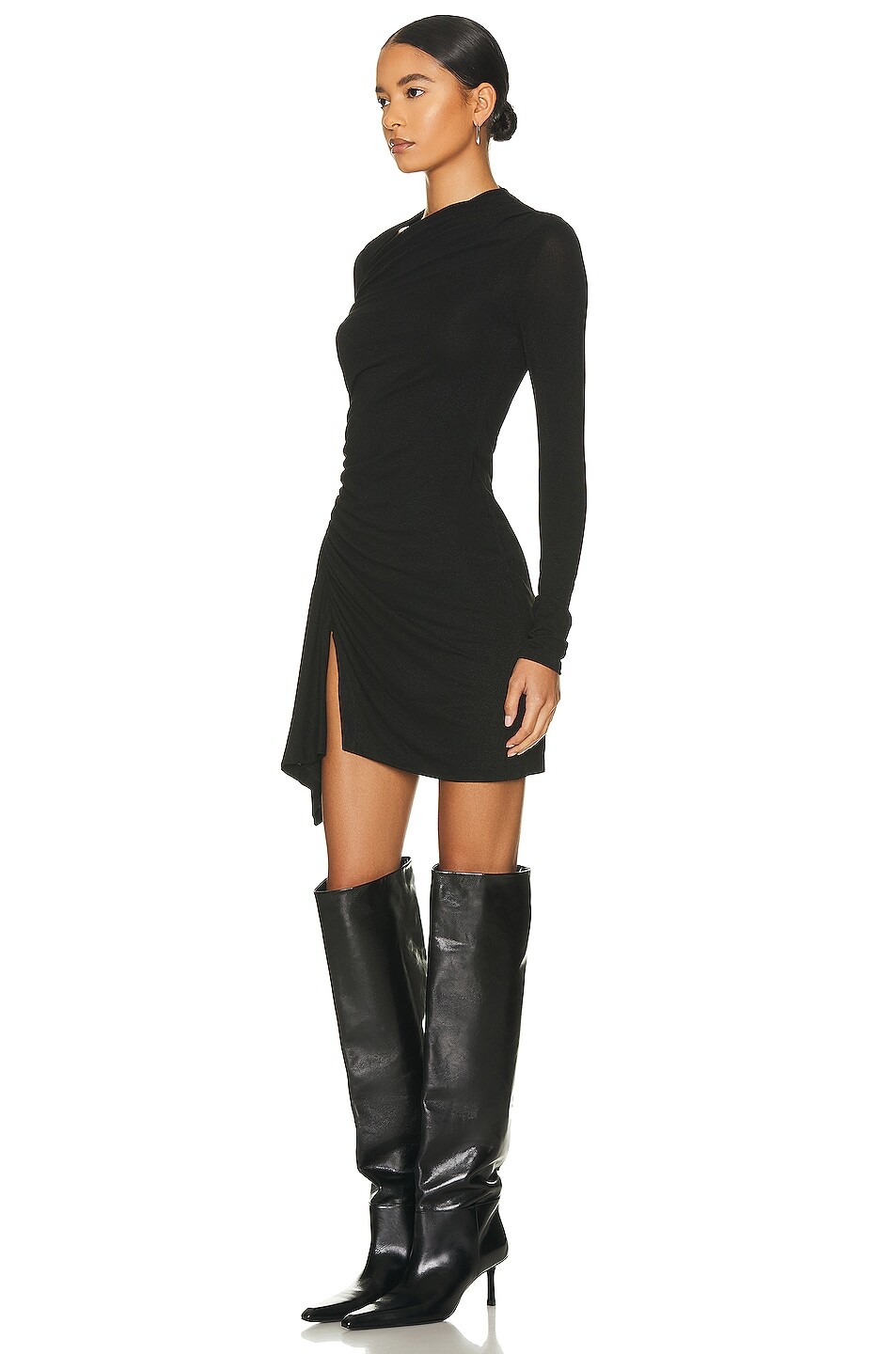 Мини-платье из джерси с люрексом и разрезами Enza Costa, черный