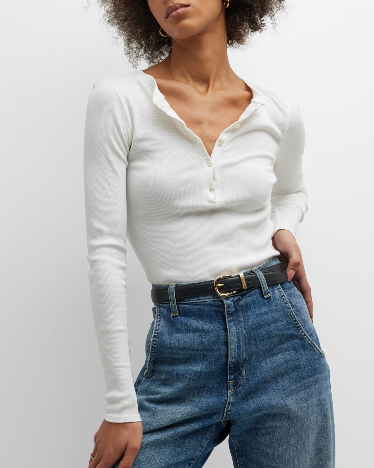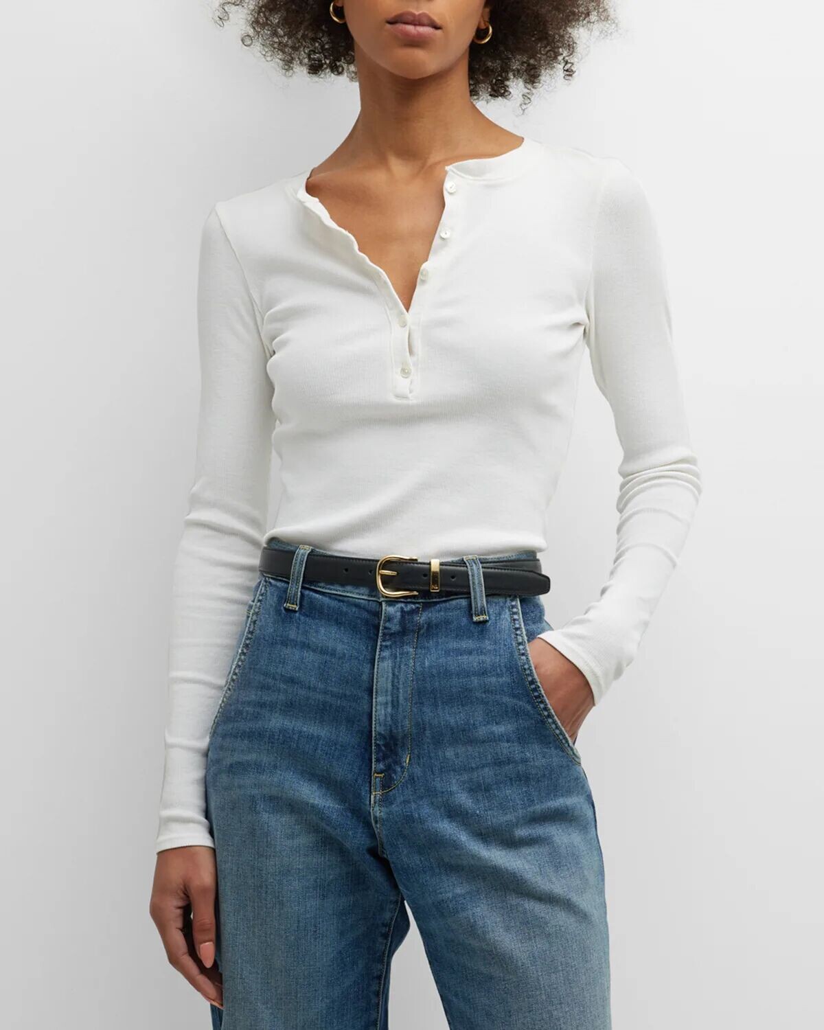 • Футболка Nili Lotan «Jordan» с полупуговицей спереди.
