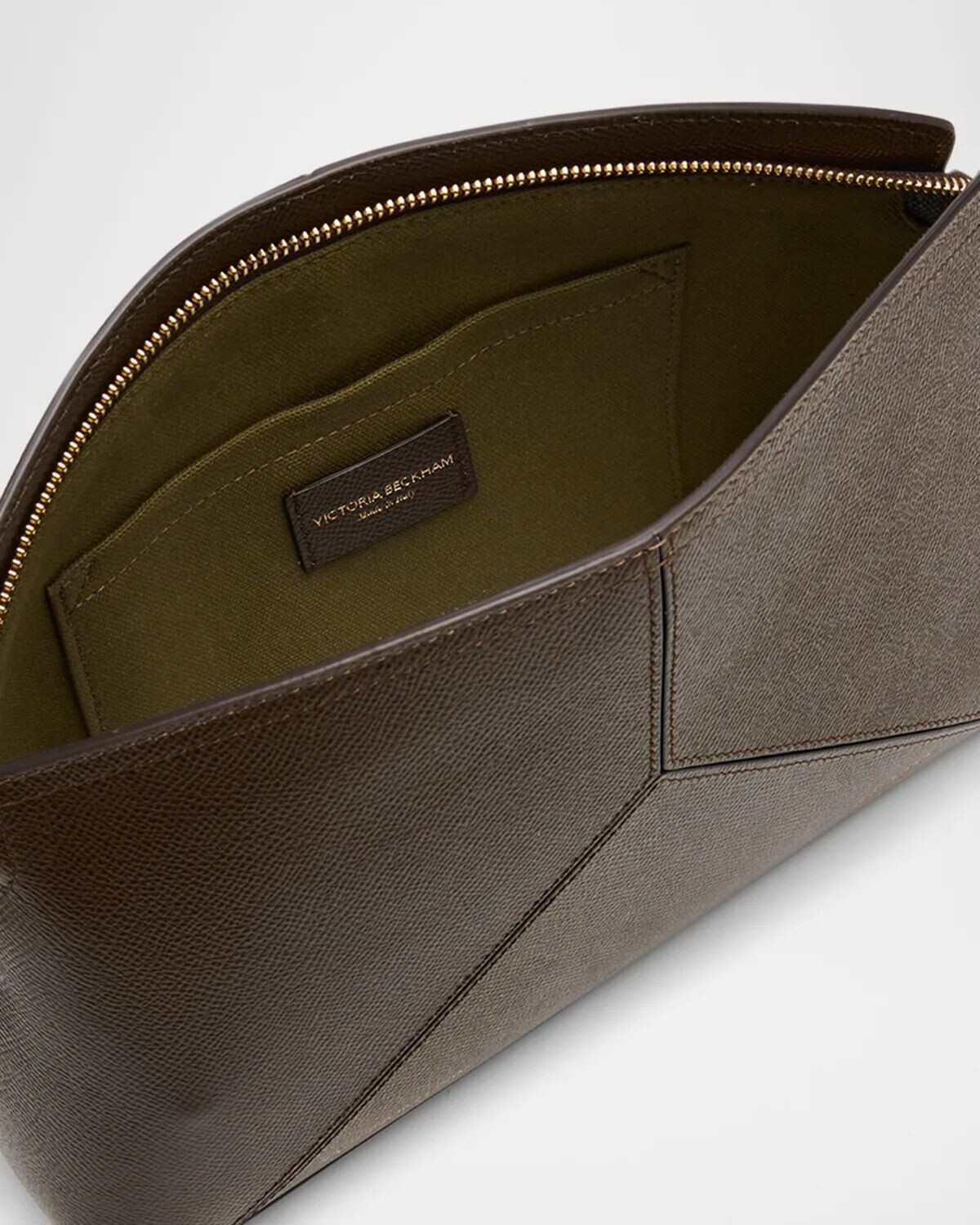 Кожаный клатч Victoria на молнии Victoria Beckham, хаки