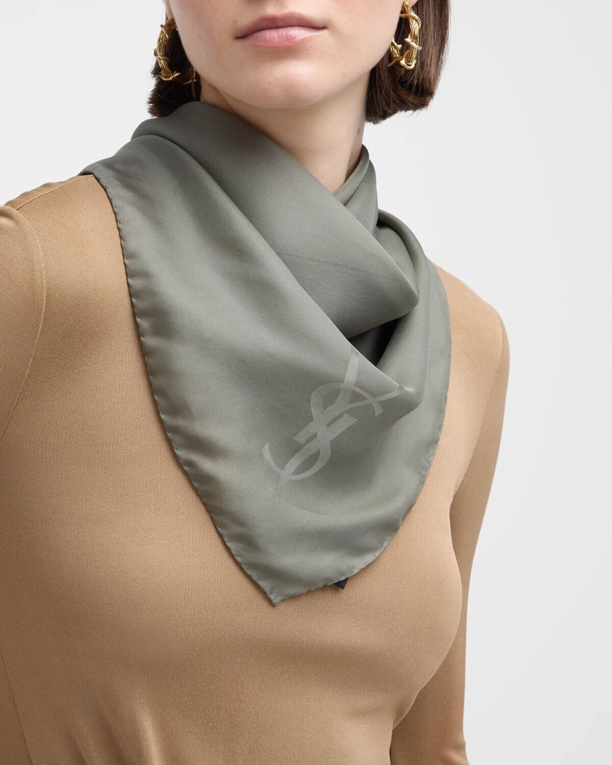- Шелковый шарф Saint Laurent Charmeuse с монограммой