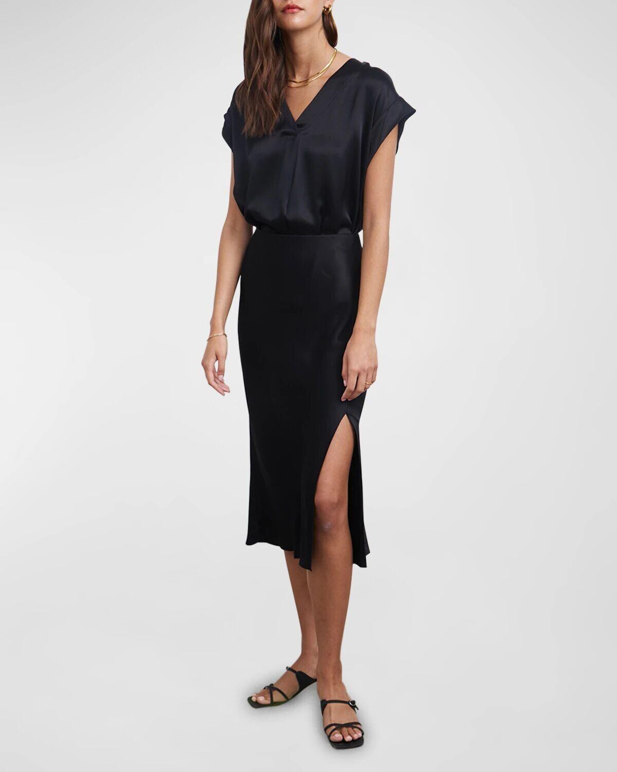 • Юбка из сверхгладкого атласного крепа Rails "Maya" с развевающимся косым силуэтом.