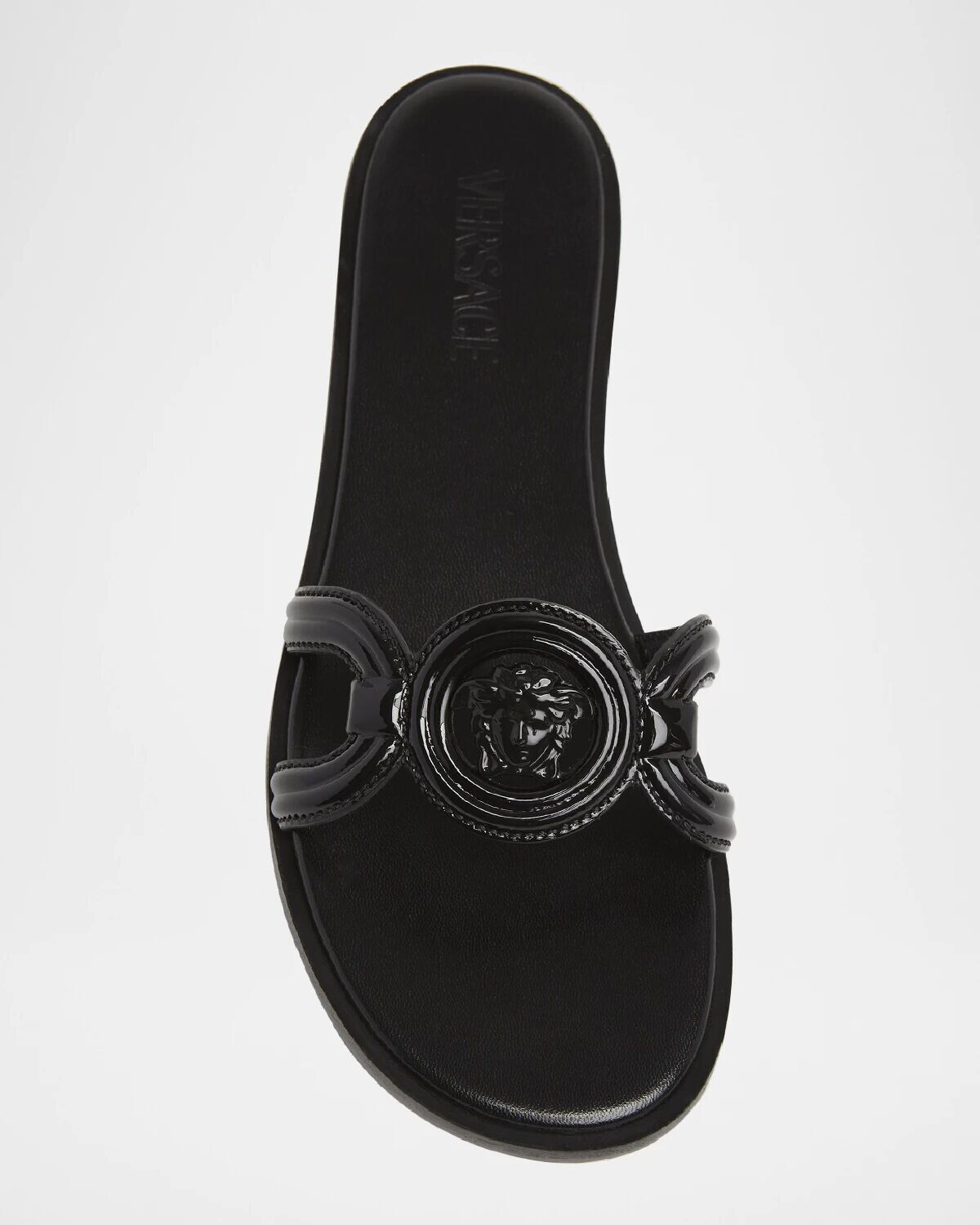 • Глянцевые кожаные босоножки Versace с центральной частью Medusa.