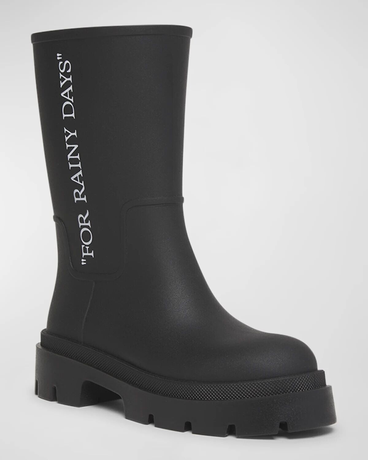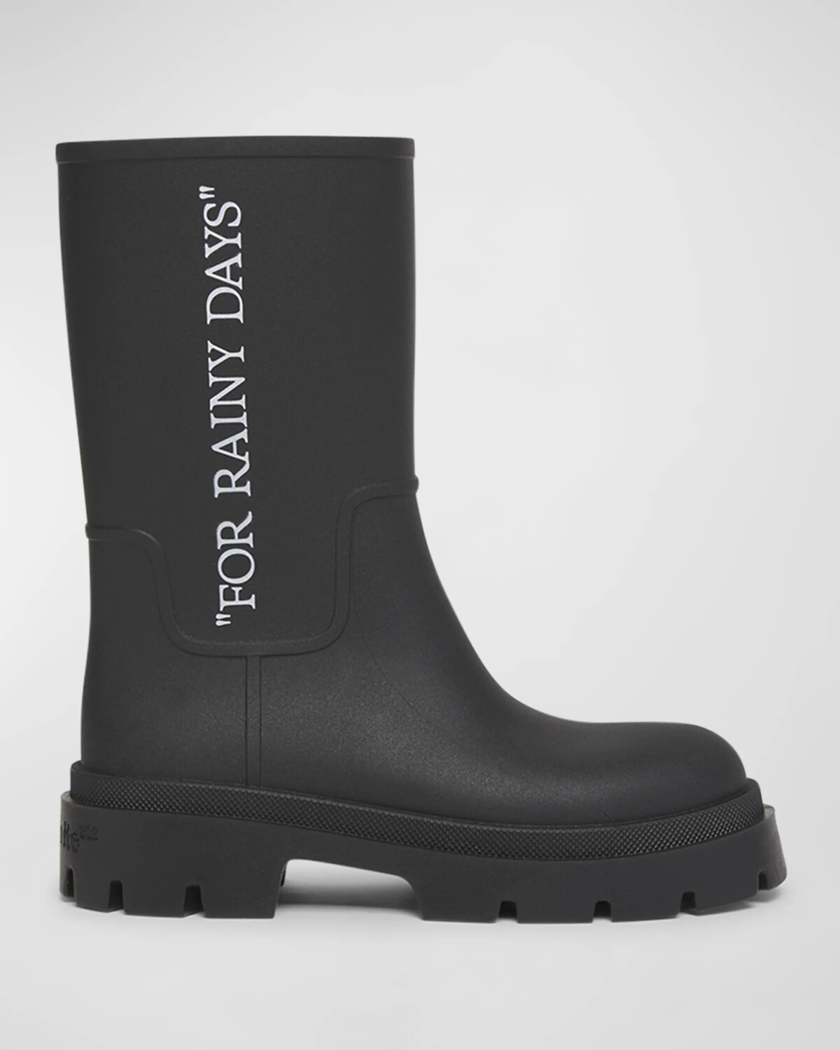 • Непромокаемые сапоги Off-White "Reboot" из ПВХ с надписью "FOR RAINY DAYS" по бокам