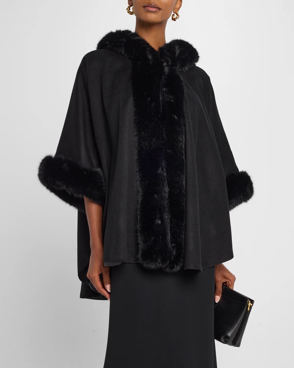 Накидка с отделкой из искусственного меха Sofia Cashmere, цвет Blk