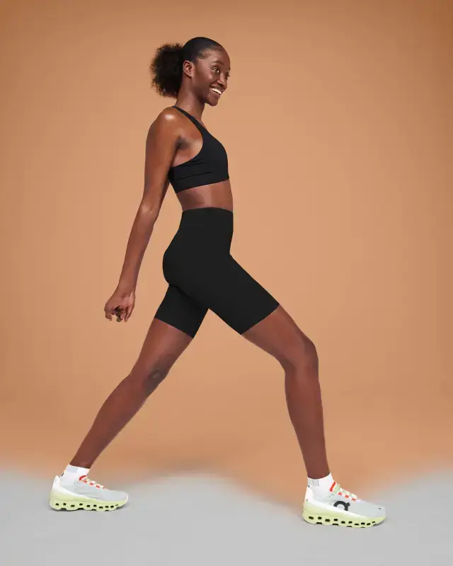 Познакомьтесь с байкерскими шортами с высокой талией, которые легко перенесут вас с тренировки на тротуар. Мягкие, влагоотводящие и с боковыми карманами для телефона