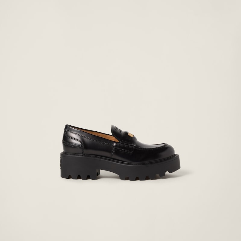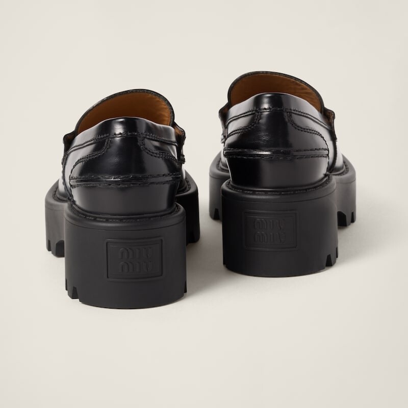 В 1950-х годах мокасины были частью униформы студентов в США. Недовольные необходимостью носить форму, студенты начали вставлять монету или «пенни» по-английски в прорезь кожаного ремешка, отсюда и название «Пенни-лоферы». Miu Miu заново изобретает эту вневременную обувь, синоним традиции, в версии из матовой кожи.