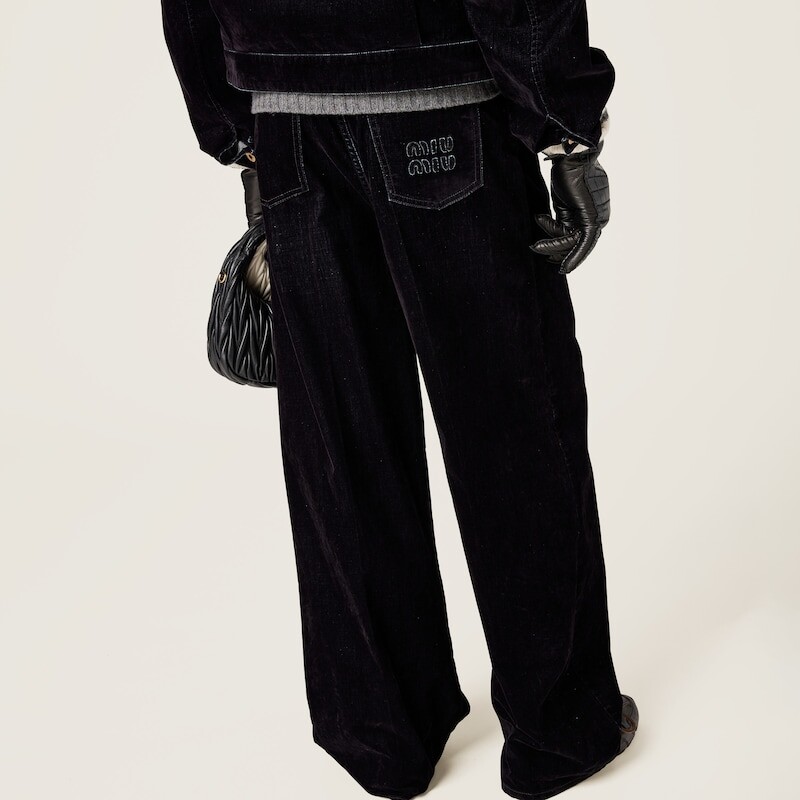 Брюки из стираного флокированного шамбре Miu Miu, черный