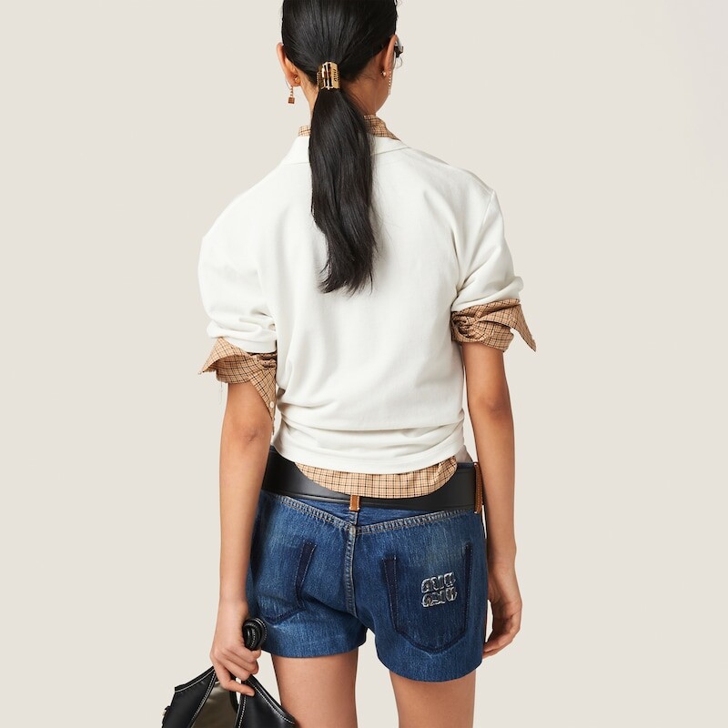 Рубашка-Поло из хлопкового пике Miu Miu, белый