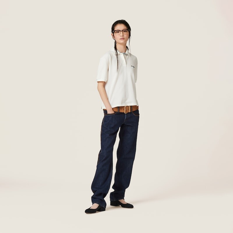 Эта рубашка-поло из хлопкового пике сочетает в себе повседневный стиль и неповторимый характер Miu Miu. Вышитый логотип добавляет завершающий штрих.