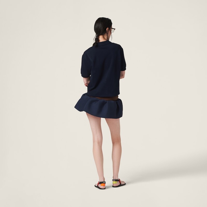 Мини-Юбка из мохера имеет изысканный и оригинальный фасон, объемный. Эффект легкой стеганости сочетается с коротким кроем, а вышитый логотип придает этому элегантному изделию культовый вид.