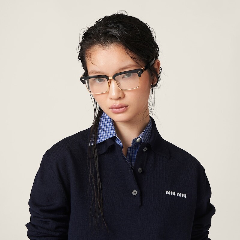 Шерстяная трикотажная рубашка Miu Miu, синий