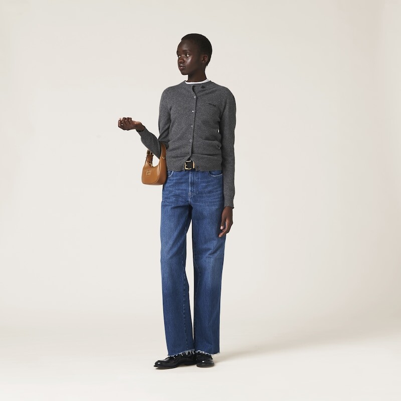 Эти джинсы из денима с простыми линиями украшены вышитым логотипом Miu Miu, который придает им культовый и неповторимый вид. Чистые линии придают ему универсальный и современный вид.