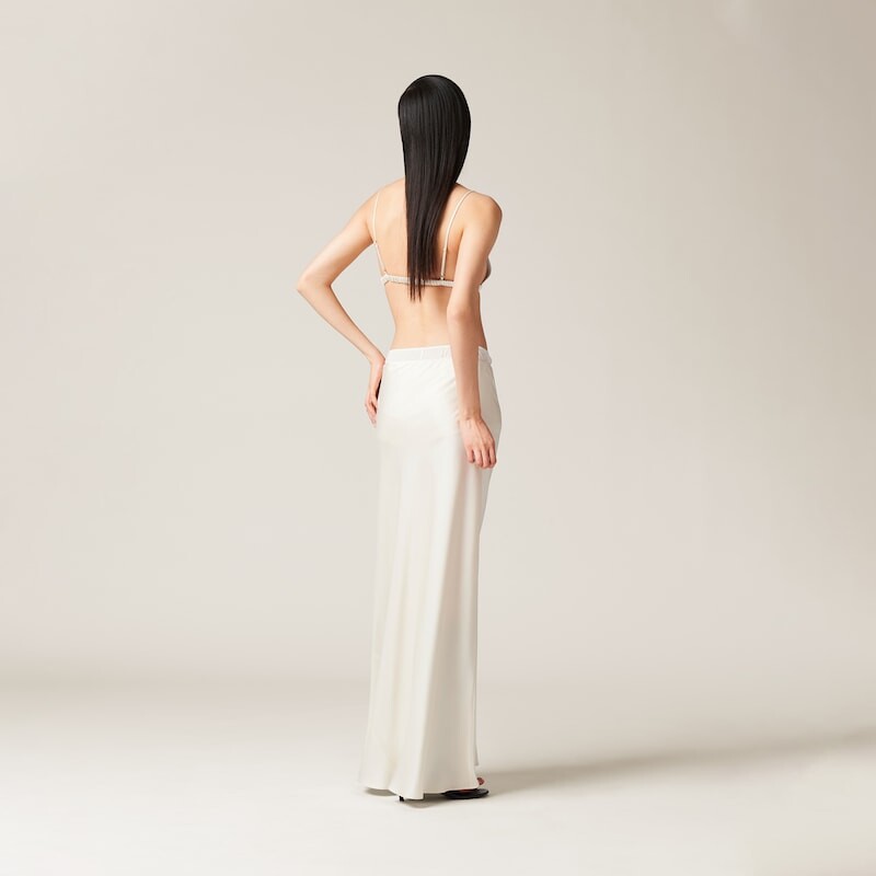 Этот атласный бюстгальтер излучает простую и изысканную чувственность. Модель демонстрирует минималистские линии, подчеркнутые лейблом с сетчатым логотипом, который создает изысканный контраст и создает культовый завершающий штрих.