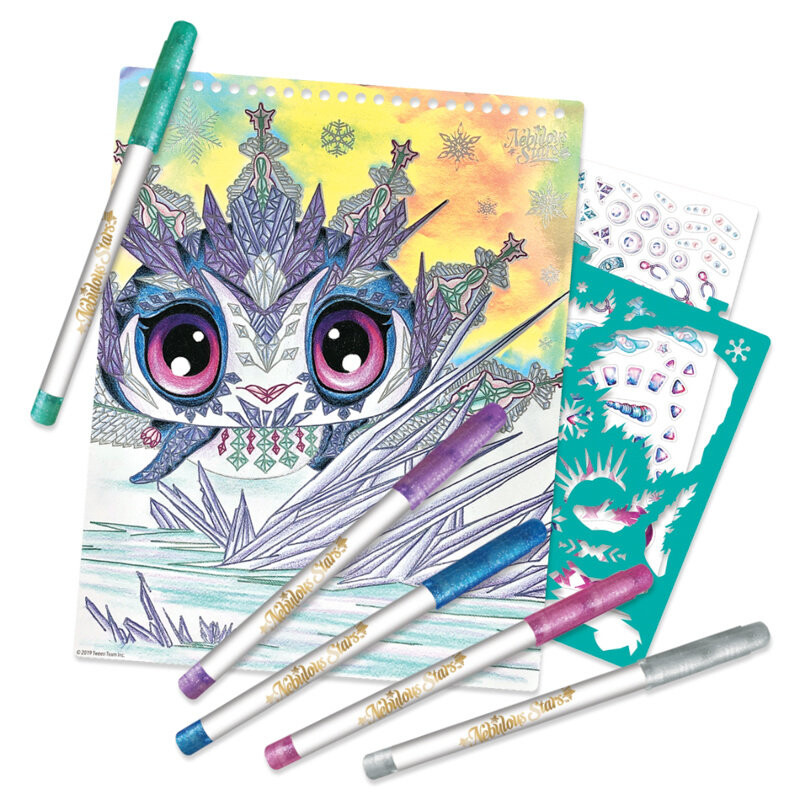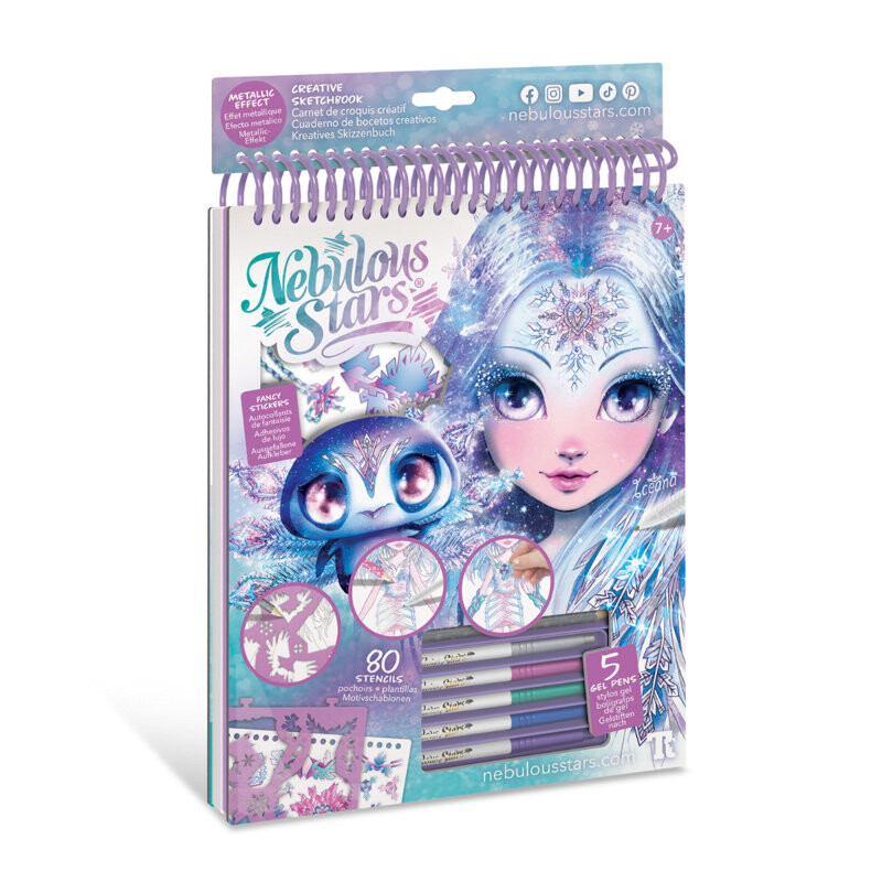 Красивый альбом для рисования для творческой души, которая любит творить уникальным способом. Более 180 наклеек и 5 металлических маркеров, благодаря которым каждый художник сможет творить графические чудеса на белых листах бумаги. Это набор, включающий все необходимое для зарисовки персонажей и элементов ландшафта, изображенных в волшебном мире Nebulous. Такая забава развивает воображение и творческие способности, а также эффективно отвлекает внимание от телефона.