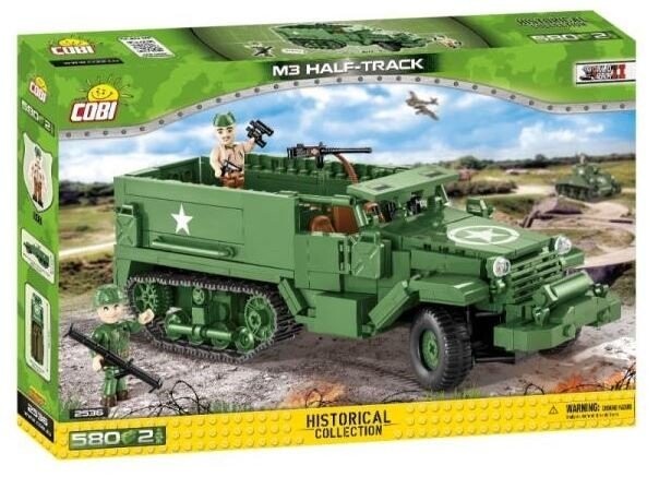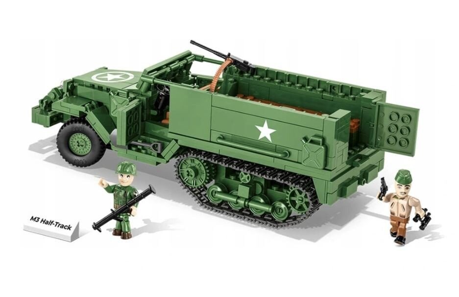 Вы можете построить модель американского автомобиля M3 GMC, используя 580 строительных блоков COBI, используя простые инструкции, основанные на понятных значках. Полугусеничный транспортер М3, переносной пулемет, открывающиеся отсеки рабочая гусеничная тяга, опускающиеся оконные шторы и поворотные колеса! Все графические детали представляют собой высококачественные принты, которые не стираются даже во время интенсивной игры. Преимуществом является конструкция, которая уникальным образом отражает оригинальные формы своего исторического прототипа. В набор также входят две фигурки американских солдат, оснащенных гранатометом «Базука», револьвером и биноклем нового типа. Новой функцией является блок, на котором напечатано название модели автомобиля. Набор будет идеален как игрушка, а также станет уникальным элементом коллекции каждого любителя военной техники и доспехов.
