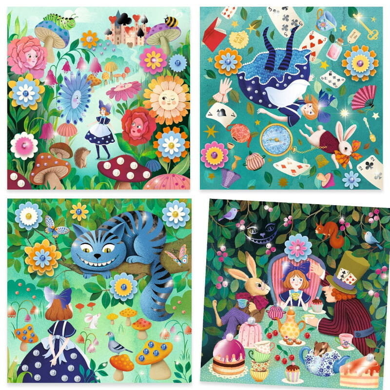 Страна чудес открывает свои двери для всех маленьких художников! В живописном наборе заключены 4 различных творческих занятия. Задача заключается в оформлении картинок четырьмя способами: декалями, бумажными цветами, ромбами и узорами на трансферной фольге. Эффект превосходит наши самые смелые ожидания. Получившиеся картинки легко могут стать украшением детской комнаты.