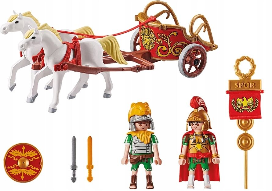 Оживите мир Астерикса и Обеликса с помощью набора PLAYMOBIL «Астерикс: Римская колесница». Присоединяйтесь к Бруту в его величественной колеснице и прокатитесь по горячему песку. Две белые лошади ржут в ожидании. Благодаря большому вниманию к деталям, великолепным персонажам комиксов и многочисленным функциям наборы PLAYMOBIL Asterix подарят детям от 5 лет и старше часы веселья.
