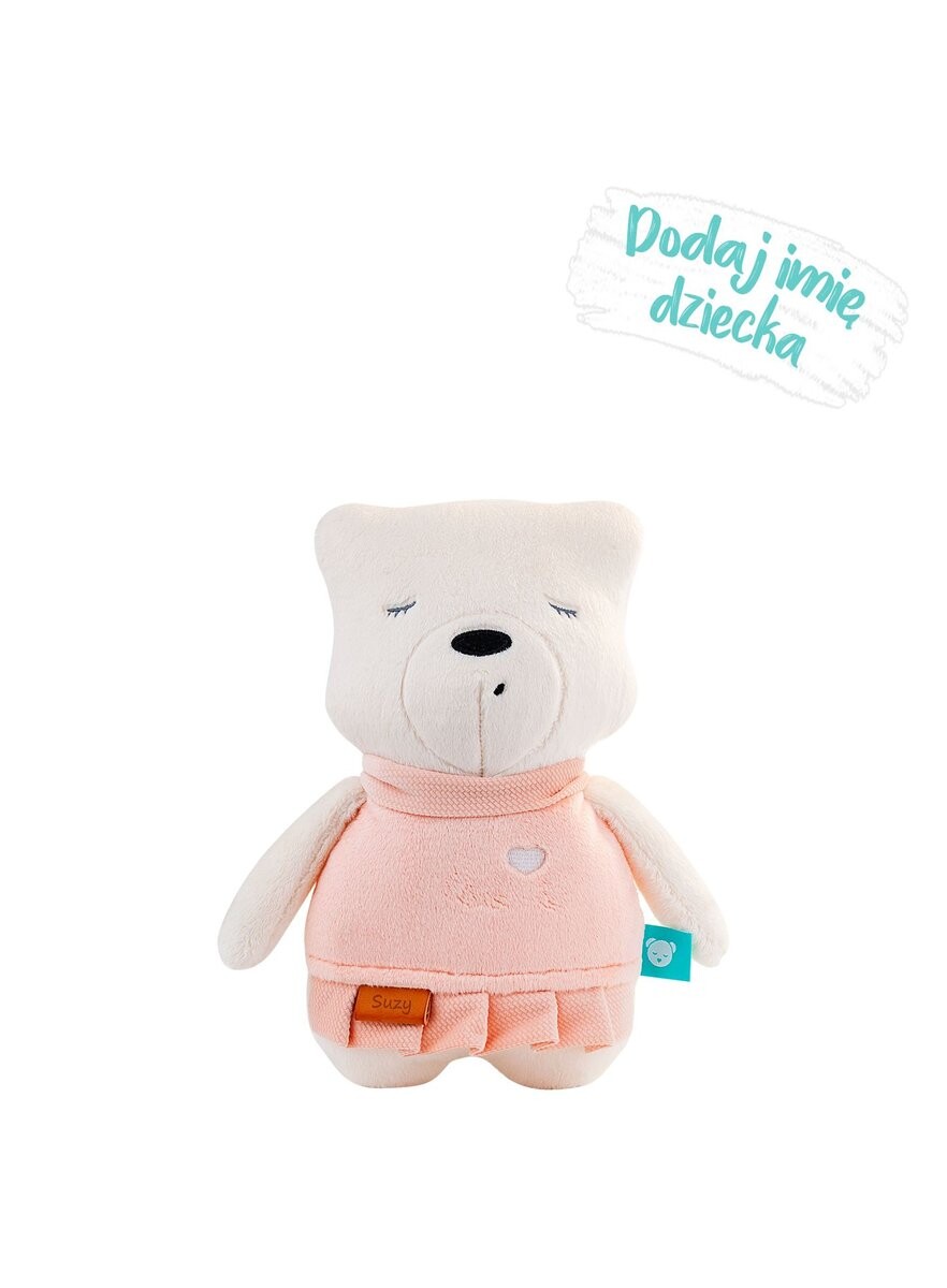Шумись Сюзи — дочь семьи Лулуси. Он может убаюкать всех малышей своим гудящим сердцем. Дружественные функции: 5 типов шума. Каждый шум издает 5 звуков: белый шум, розовый шум, морские волны, падающий дождь, шум околоплодных вод с бьющимся сердцем. Датчик сна После выключения гудящего механизма Шумись переходит в режим ожидания. Он включится снова, когда ребенок начнет плакать или вокруг него появится шум. Система Non-Stop Обеспечивает непрерывный шум до 12 часов. Регулируемая громкость Механизм позволяет выбирать уровень громкости шума и запоминает последнюю настройку. Управление одной кнопкой Сердце Шумисии очень удобно и просто в использовании - все функции можно настроить одной кнопкой (или на смартфоне) 0+ Безопасно с рождения Безопасно с первого дня жизни ребенка, изготовлено из сертифицированных материалов Можно стирать в машине Тедди мишек можно стирать в стиральной машине при 40 градусах после снятия гудящего механизма. Сделано в Польше. Шуми полностью производятся в Польше.