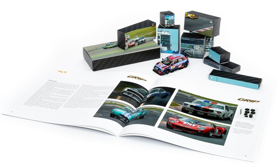 Стильная упаковка, подробное сопутствующее издание с большим количеством общих знаний и увлекательными фотографиями, а также аудиобаза. который одним нажатием кнопки воспроизводит оригинальный звук двигателя, напоминающий звук гоночного автомобиля: праздник для поклонников GRIP! Кроме того, в различных коробочках содержатся небольшие сюрпризы, которые можно собирать и украшать. Таким образом, вы сможете создать свой собственный мир впечатлений от GRIP за 24 дня — благодаря модели гоночного автомобиля WRC в масштабе 1:43, окрашенной в привлекательные «военные цвета»! Все в комплекте, все включено – можно начинать прямо сейчас!