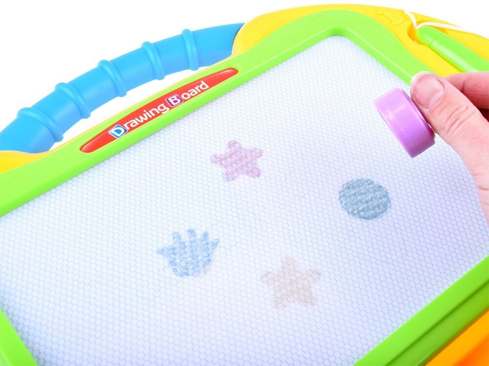 Фон доски разноцветный, при рисовании он меняется в зависимости от того, где вы пишете или рисуете. Для живописи также используются штампы. Если рисунок вам надоест или он не понравится, его можно просто стереть подвижным маркером в форме ручки. Игра с альбомом для вырезок станет отличным решением для скучных вечеров.
