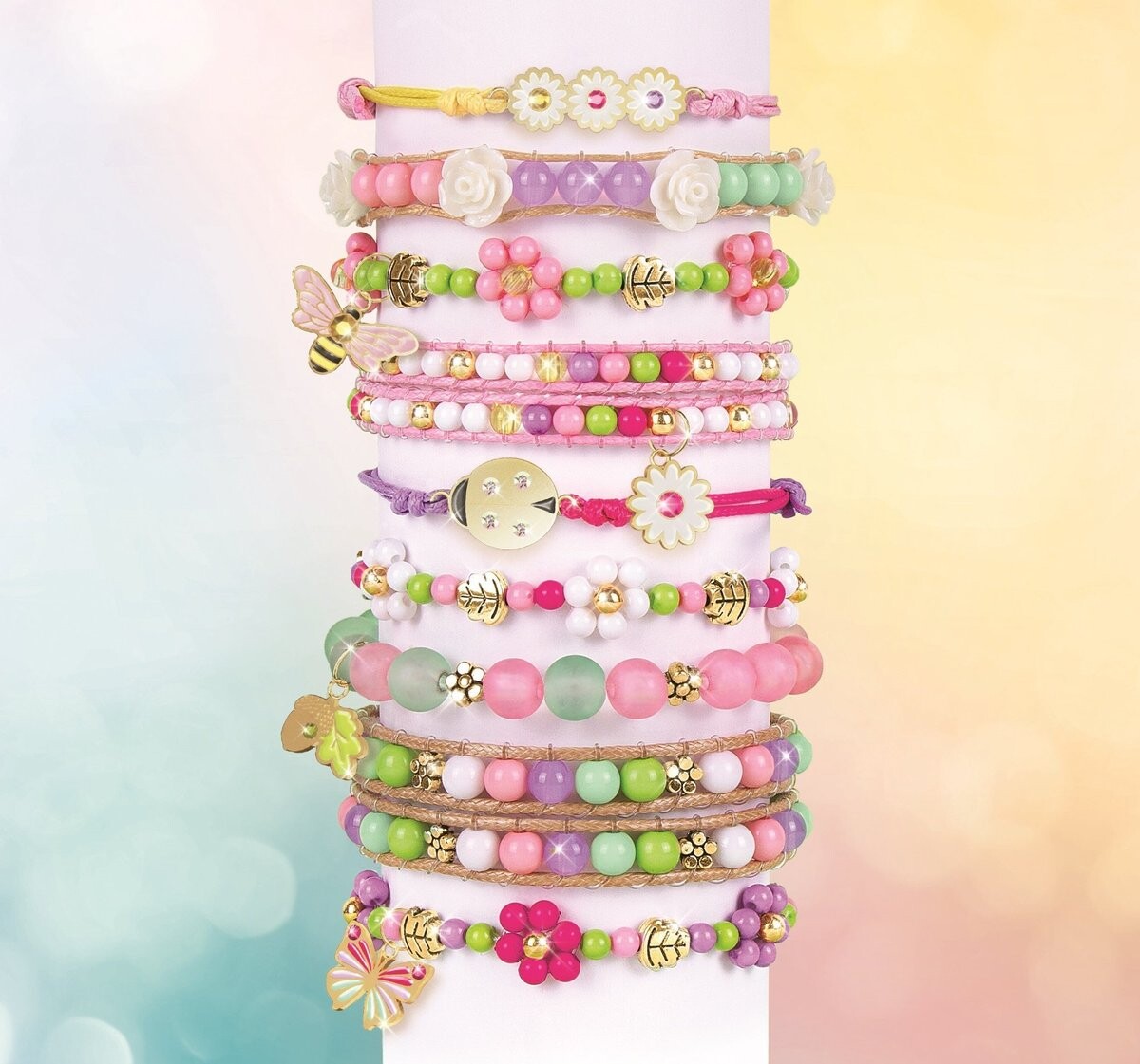 Набор браслетов — предложение, созданное популярным брендом Make It Real, предназначенный для начинающих дизайнеров и художников. В нем собрано все необходимое для изготовления браслетов из разноцветных бусин.