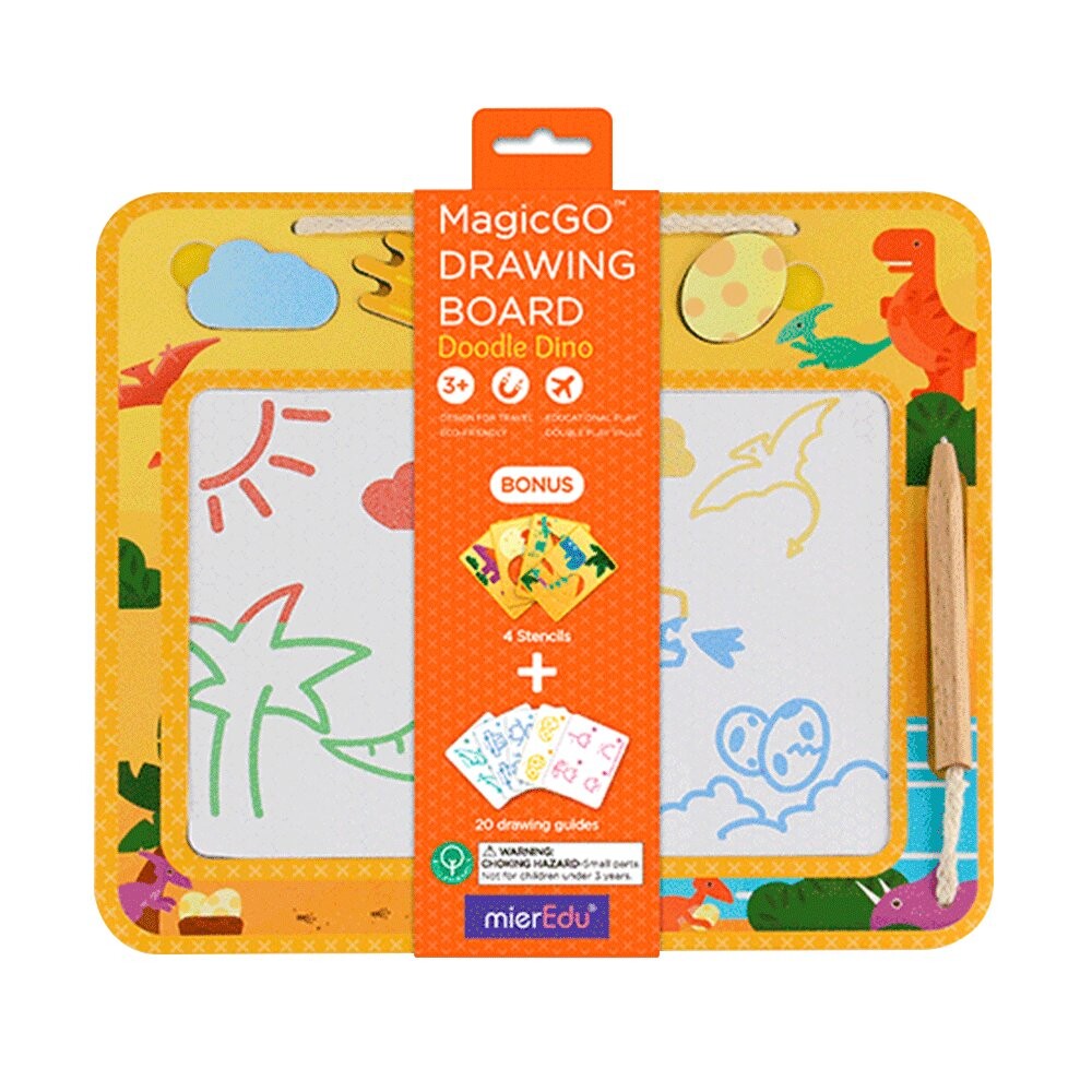 Магнитная доска - Znikopis - Dino od mierEdu. Красивая и экологичная доска для рисования, которая подарит часы творческого веселья. Ваш ребенок может писать или рисовать на нем с помощью прилагаемого стилуса и использовать четыре тематических магнитных штампа для создания своих шедевров. В набор также входит 20 карточек с пошаговыми инструкциями по созданию рисунков. Доска разделена на 4 секции – на каждой из них ребенок будет создавать картинки разного цвета. Легко стереть — просто нажимайте на доски, и вы сможете начать играть с самого начала. Идеально подходит для путешествий. Откройте для себя другие креативные аксессуары от miEdu.