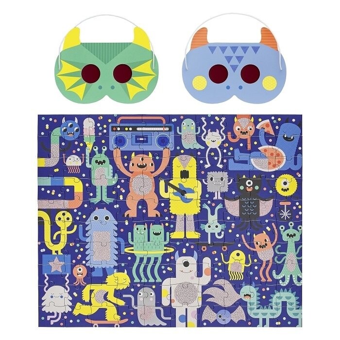 Решите головоломки и найдите скрытые объекты в этой головоломке из 100 деталей от Petit Collage. Используйте прилагаемые маски, чтобы найти спрятанные и потерянные предметы. Головоломка изображает многолюдную сцену, наполненную очаровательными монстрами, устраивающими совместную вечеринку. Некоторые монстры потеряли несколько предметов и нуждаются в вашей помощи, чтобы их найти.