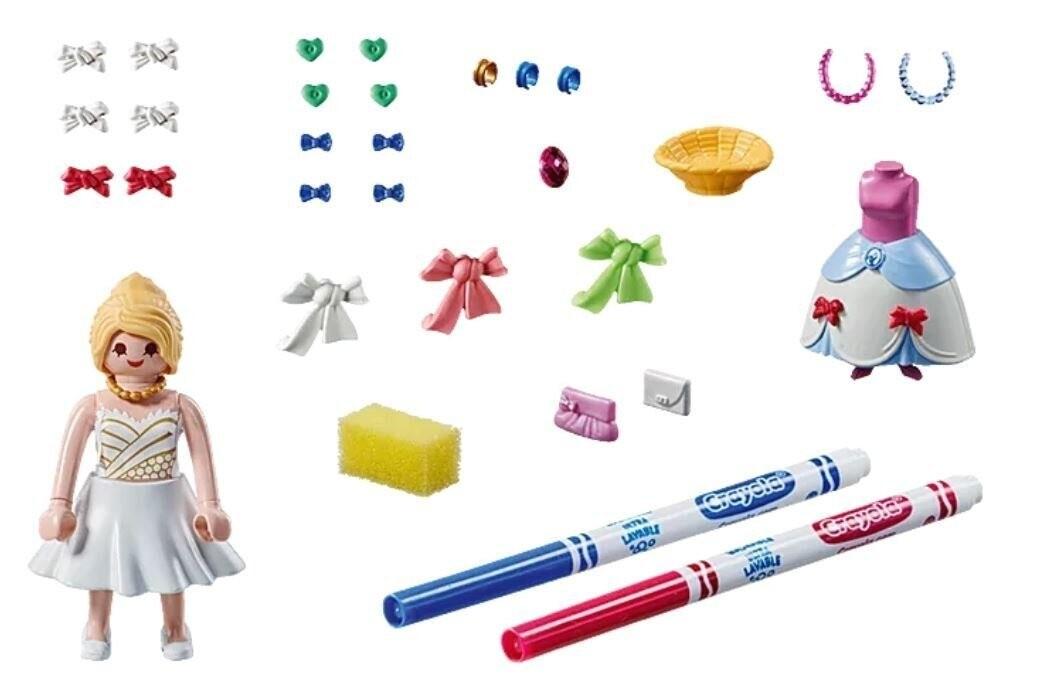 Получайте удовольствие от цветов с PLAYMOBIL Color! Создавайте красивые вечерние наряды и создавайте яркие платья и юбки, используя прилагаемые маркеры. Цвета легко смываются водой, что доставляет бесконечное удовольствие.