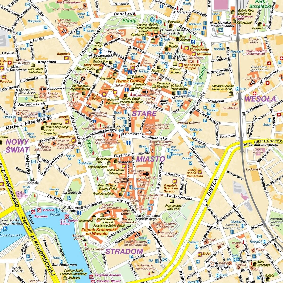 Настенная карта Кракова в масштабе 1:20 500, изданная издательством Compass, может быть как украшением офисов, офисов, транспортных компаний, так и источником знаний о топографии этого города.