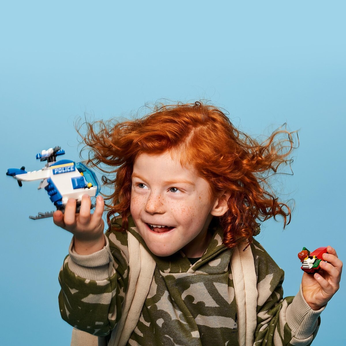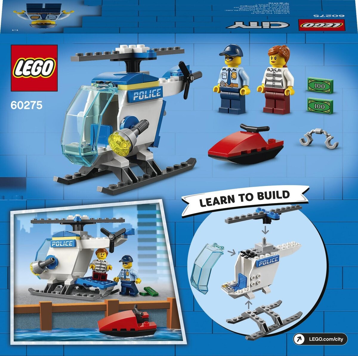 Набор LEGO City Police Helicopter (60275) понравится детям, которые любят ролевые игры. Их ждет солидная модель вертолета с вращающимся винтом и крутой гидроцикл. Также есть минифигурки полицейских и грабителей, наручники и игрушечные банкноты, так что все, что вам нужно, — это немного воображения для бесконечных приключений!