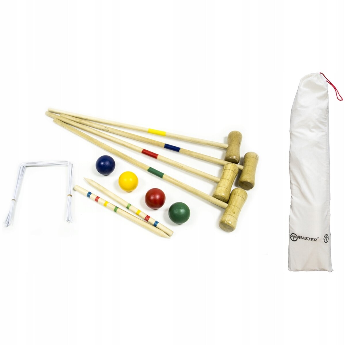 Набор идеально подходит как для игры с семьей в саду, так и для прогулок на свежем воздухе с друзьями. Все это можно легко носить в сумке. Во вложении (внизу страницы) инструкция по игре в садовый крокет.