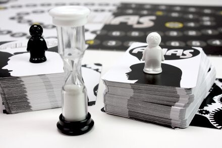 Псевдоним — это забавная словесная игра, в которой основное правило — «другими словами». Цель — объяснить как можно больше слов с карточек, используя синонимы, противоположности и подсказки, прежде чем в песочных часах закончится песок. За каждое отгаданное слово пешка передвигается по доске вперед, а команда Побеждает тот, кто быстрее доберется до финиша! Звучит просто, но время против вас... В комплект входят: