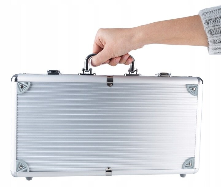 Набор упакован в очень прочный закрытый чемодан. Внутренняя часть чемодана имеет специальное тиснение для удобной упаковки всех элементов набора.