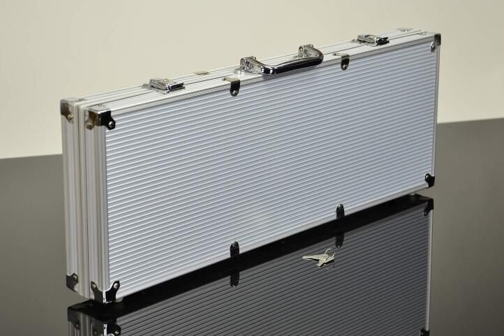 Недорогой покерный набор в прочном алюминиевом корпусе в современном дизайне, фишки пяти цветов без обозначенных номиналов. В комплект входит инструкция на немецком языке для начинающих.