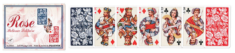 Карты Piatnik высочайшего качества. Две колоды меньшего формата для облегчения раскладывания пасьянса. На обратной стороне (рубашек) нежный мотив розы. Качество и традиции. Венская фабрика Ферд. Piatnik & Sohne существует с 1824 года.