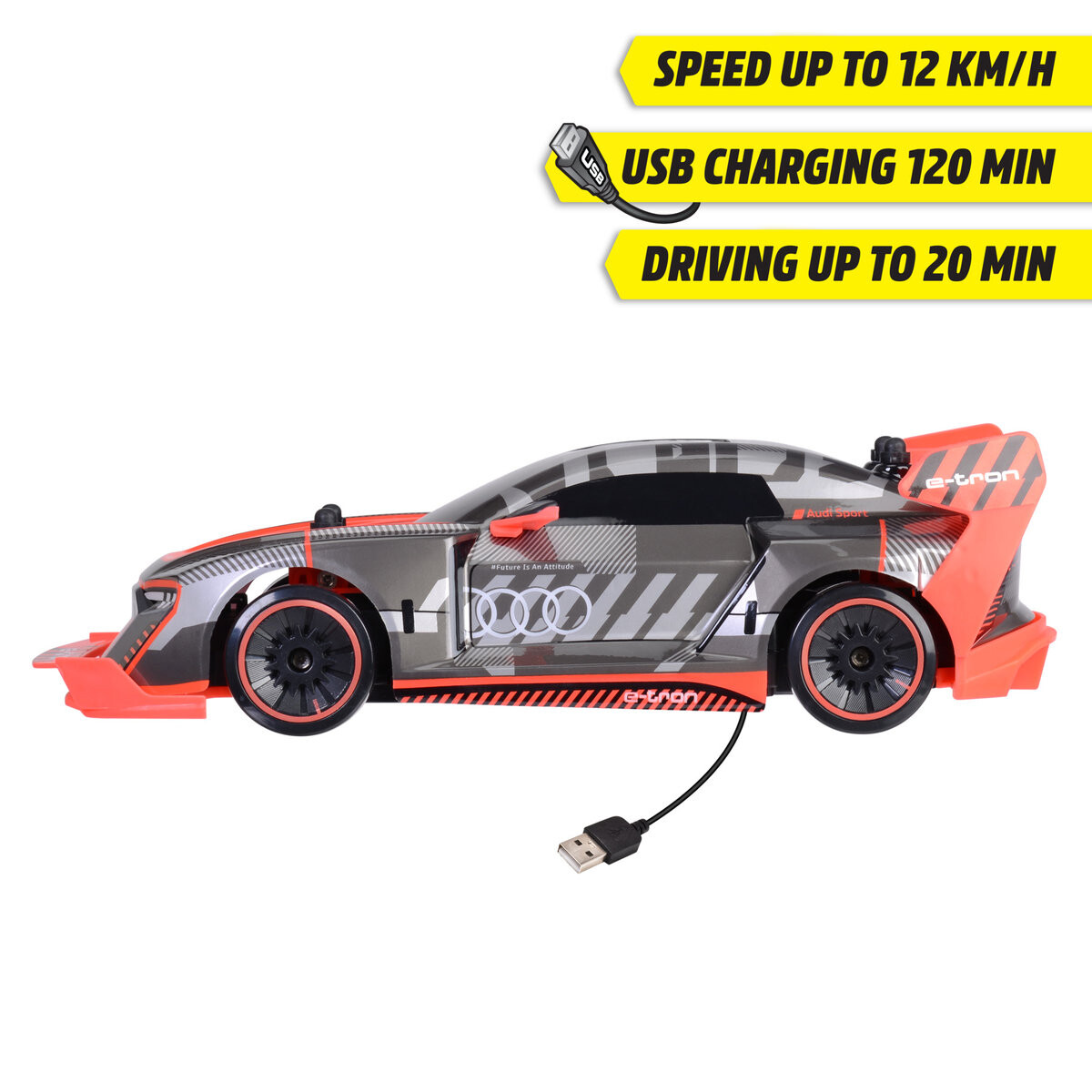 На этом гоночном автомобиле дети почувствуют себя настоящими водителями. Audi S1 E-Tron развивает скорость до 15 км/ч, обеспечивая захватывающие и динамичные поездки. Дети смогут развивать навыки управления транспортными средствами и исследования. какое потрясающее чувство — управлять этой быстрой машиной.Функция турбо — превзойдите всехДополнительным преимуществом этого Audi с дистанционным управлением является функция турбо, которая позволяет добиться еще большего ускорения. Когда возникнет необходимость обогнать соперников на гоночной трассе, функция турбо обеспечит дополнительный толчок, позволяя вашему ребенку почувствовать себя настоящим чемпионом по рулю! Зарядка через USBAudi S1 E-Tron оснащен аккумулятором, который можно заряжать через USB-порт. Это практичное решение, позволяющее избежать необходимости замены батареек и обеспечить долгие часы удовольствия. После полной зарядки детям будет предоставлено до 90 минут необыкновенной поездки, во время которой они смогут наслаждаться полной свободой передвижения. Укрепление навыковМашинки с дистанционным управлением — это очень весело. который дополнительно развивает мануальные навыки и координацию у самых маленьких детей. Благодаря Audi S1 E-Tron дети тренируют точное управление транспортным средством, быструю реакцию и креативность, создавая собственные гоночные трассы. Виртуальные гонки в реальном стилеС помощью этого автомобиля Audi с дистанционным управлением дети могут взять на себя роль настоящих водителей и принять участие в виртуальных гонках в своем собственном стиле. Фантастическое качество сборки и аутентичный дизайн автомобиля добавляют игре дополнительный реализм, даря самым маленьким ощущение настоящих гонок на трассе!