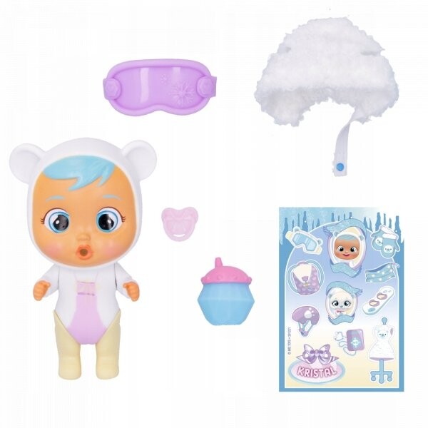 Новая коллекция Keep Me Warm от Cry Babies Magic Tears доступна в составе новой коллекции Тема Ледяного мира! Все ваши Magic Tears Cry Babies одеты в зимние наряды из настоящей ткани! Теперь маленькие плаксы носят тканевую одежду, которая согревает их! Вы сможете нарядить своих любимых персонажей и комбинировать наряды в зависимости от их приключений в этот день! В коллекции более 12 разных кукол! Откройте упаковку и откройте для себя своего персонажа и все аксессуары! Они плачут волшебными слезами , когда вы нажимаете им на живот. Дети могут развернуть 5 сюрпризов: бутылочку, соску, снежные очки, предмет одежды и лист с наклейками.
