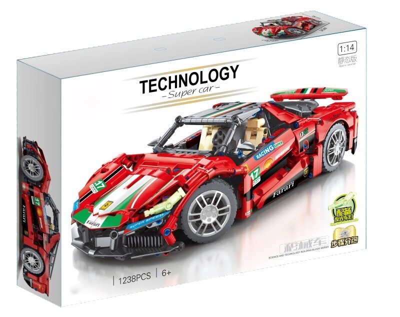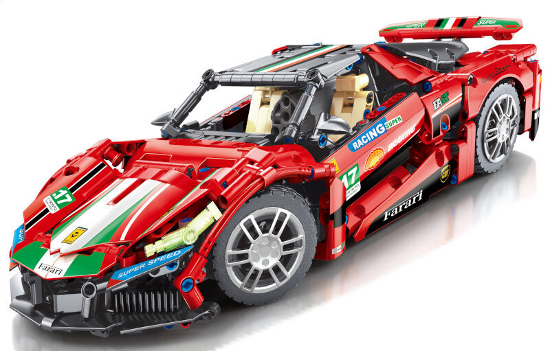 Кирпичная машина в масштабе 1:14 (1238 элементов). Набор позволит вам создать гоночный автомобиль с множеством деталей. Используя такое большое количество блоков, мы можем создать реалистично выглядящий автомобиль. Инструкция нам в этом поможет. Автомобиль будет украшен прикрепленными наклейками и открывающимися дверями. Также мы сможем поднять спойлер. Мы наверняка будем в восторге от реалистично воспроизведенных колес. Коробка элегантная. Он оснащен ручкой. Содержит подробную графику.