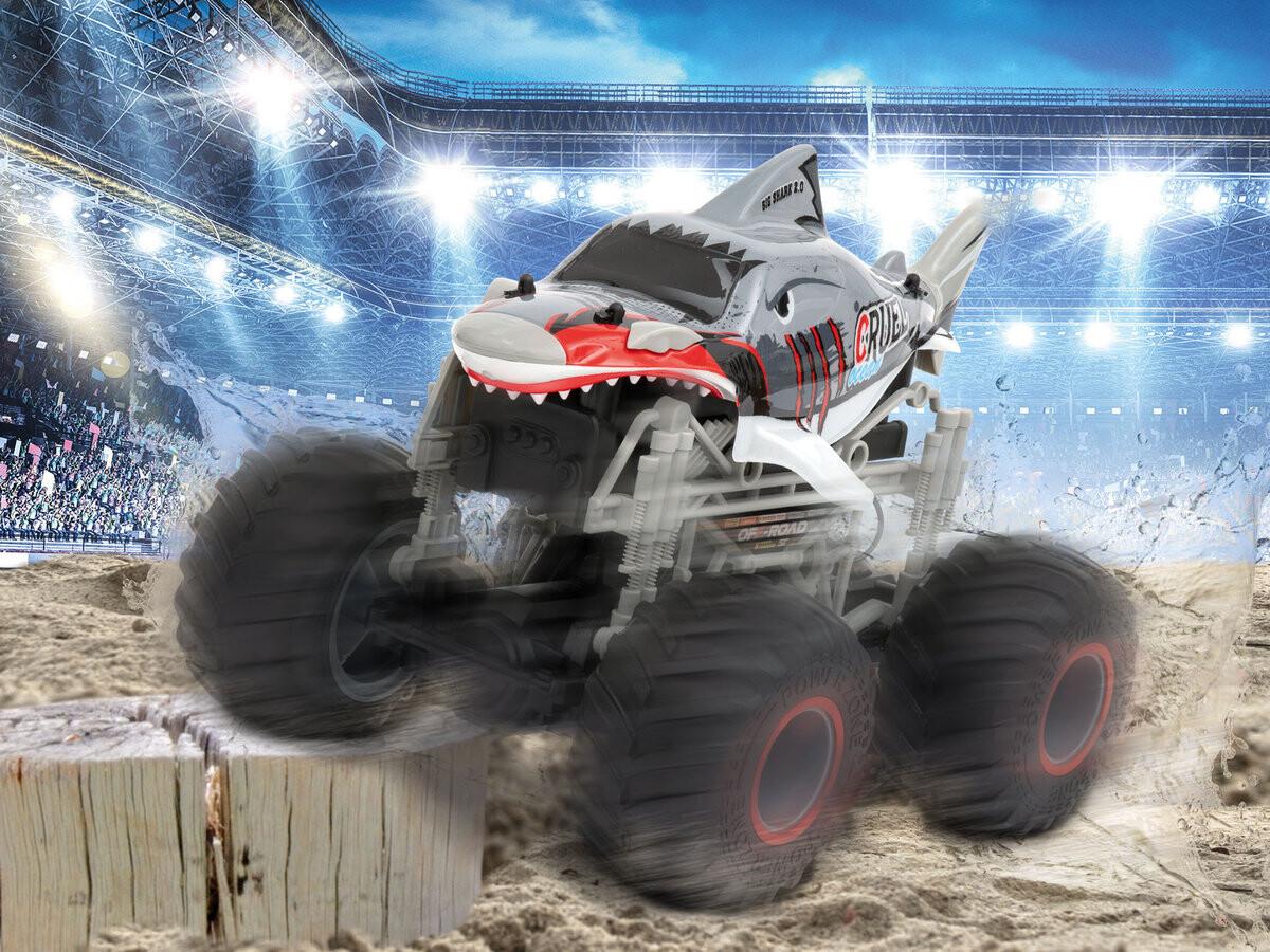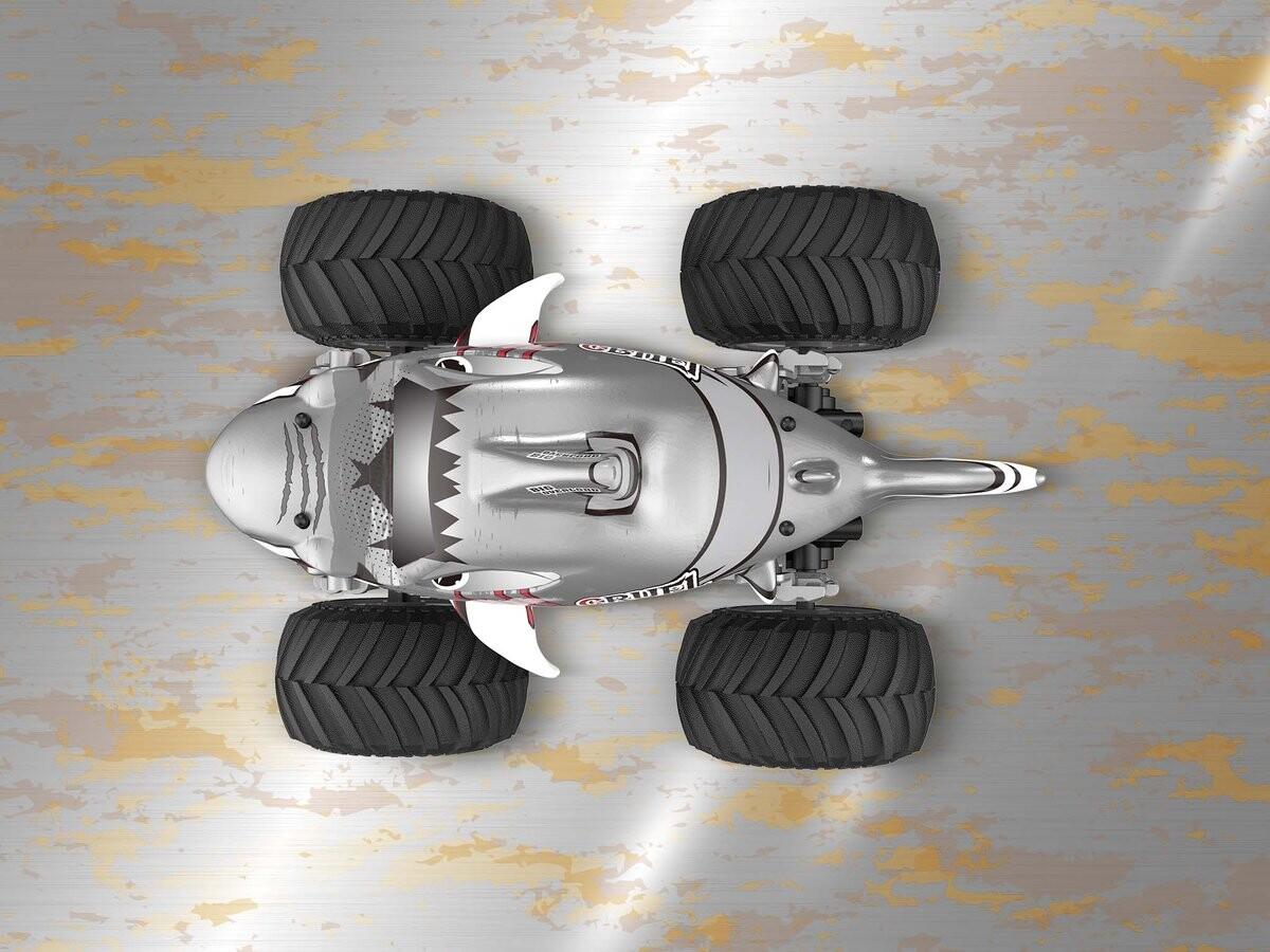 Акула СИГНАЛИЗАЦИЯ на дороге?! Благодаря контроллеру Revell «Big Shark 2.0» любая местность может стать опасной! Big Shark 2.0 притягивает взгляды, где бы вы их ни увидели. Но что еще более впечатляет, так это его оснащение: огромные резиновые шины-монстры, пульт дистанционного управления с частотой 2,4 ГГц для многопользовательской игры и сменный литий-ионный аккумулятор напряжением 7,4 В, позволяющий кататься до 15 минут. Затем просто зарядите его с помощью зарядного устройства USB. Это делает Big Shark 2.0, развивающую скорость до 15 км/ч, неотразимой! Кроме того, пульт дистанционного управления можно настроить как для правшей, так и для левшей.
