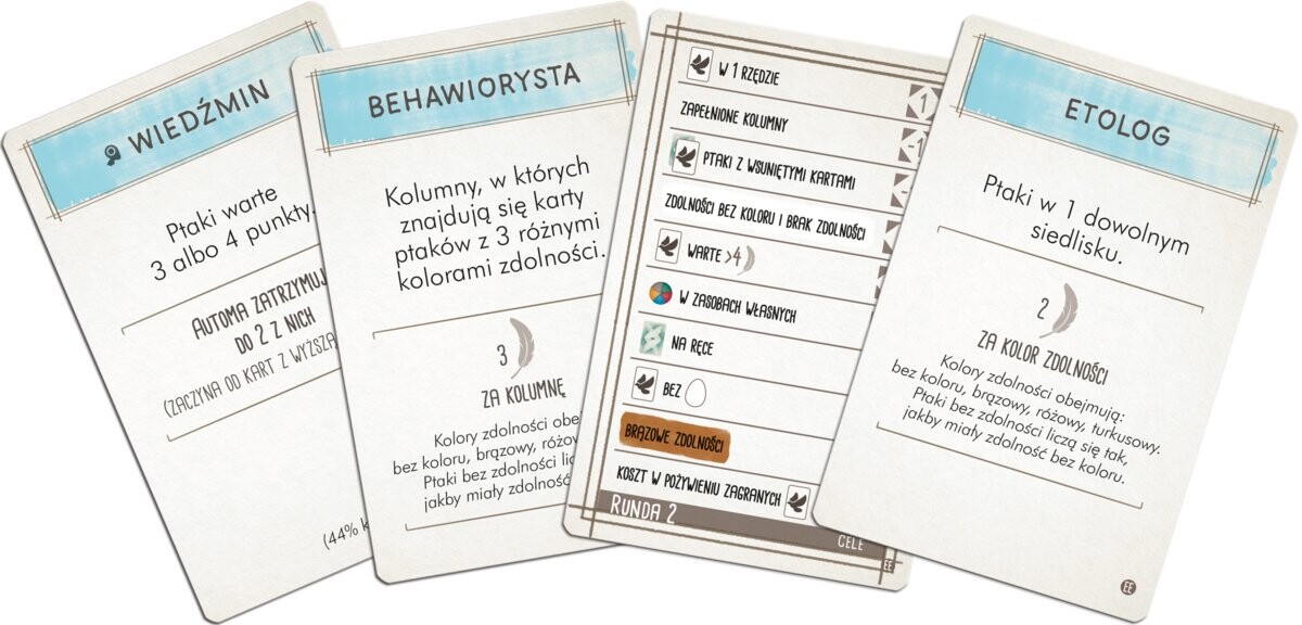 Расширение «Птицы Европы» также включает в себя дополнительный поднос для упорядочения вашей растущей коллекции птиц (из основной игры, текущего и будущих расширений), 15 фиолетовых яиц, дополнительные жетоны еды, новые жетоны целей. , бонусные карты и новый красочный блокнот для подсчета очков для обеих одиночных игр. а также многопользовательские варианты.
