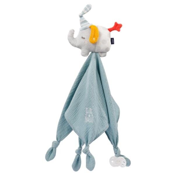 Первая мягкая игрушка, светящаяся в темноте, Слон из коллекции Good Night Изготовит мягкий плюшевый слоненок из коллекции Good Night. все твои мечты самые красивые! Мягкая игрушка со слоненком в ночном колпаке вызовет улыбку и очарует сердце каждого ребенка. Завязанные концы и материал, из которого изготовлен талисман, исключительно мягкий и нежный для детской кожи, манит детей схватить, обнять и полюбить. Специальные флуоресцентные нити, вплетенные в элементы игрушки, светятся в темноте, делая ночь менее страшной и более безопасной. На одном конце муслинового пледа есть силиконовое кольцо, к которому можно легко прикрепить соску, чтобы она не потерялась. «Уютный слон» — не только идеальный способ спать но и любимый компаньон детей с самых первых минут. Особенности: Мягкая игрушка. Светится в темноте. Успокаивает, успокаивает и помогает заснуть. Это стимулирует воображение и развивает чувства. Различные текстуры материалов стимулируют прикосновение. Подробная информация о товаре: Талисман со слоненком и хлопковым мини-одеялом с силиконовым кольцом. Машинная стирка при 30С. Внешний материал: бархат, хлопковый муслин, трикотаж, флуоресцентные нити, светящиеся в темноте (после предварительного воздействия дневного или искусственного света). Наполнитель: 100% полиэстер. Высота талисмана: 42 см х 19 см х 5 см. Идеальный подарок для младенцев и малышей. Все игрушки немецкого бренда FEHN безопасны для детей от 0 лет. Они изготовлены из материалов самого высокого качества. Они соответствуют стандартам EN71, CE. Их безопасность проверена независимыми исследовательскими институтами.