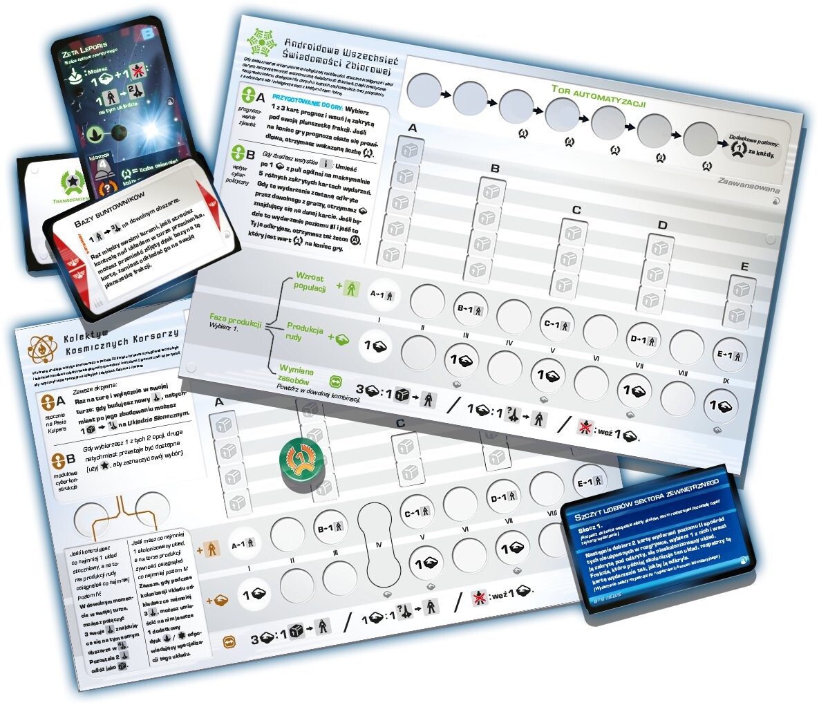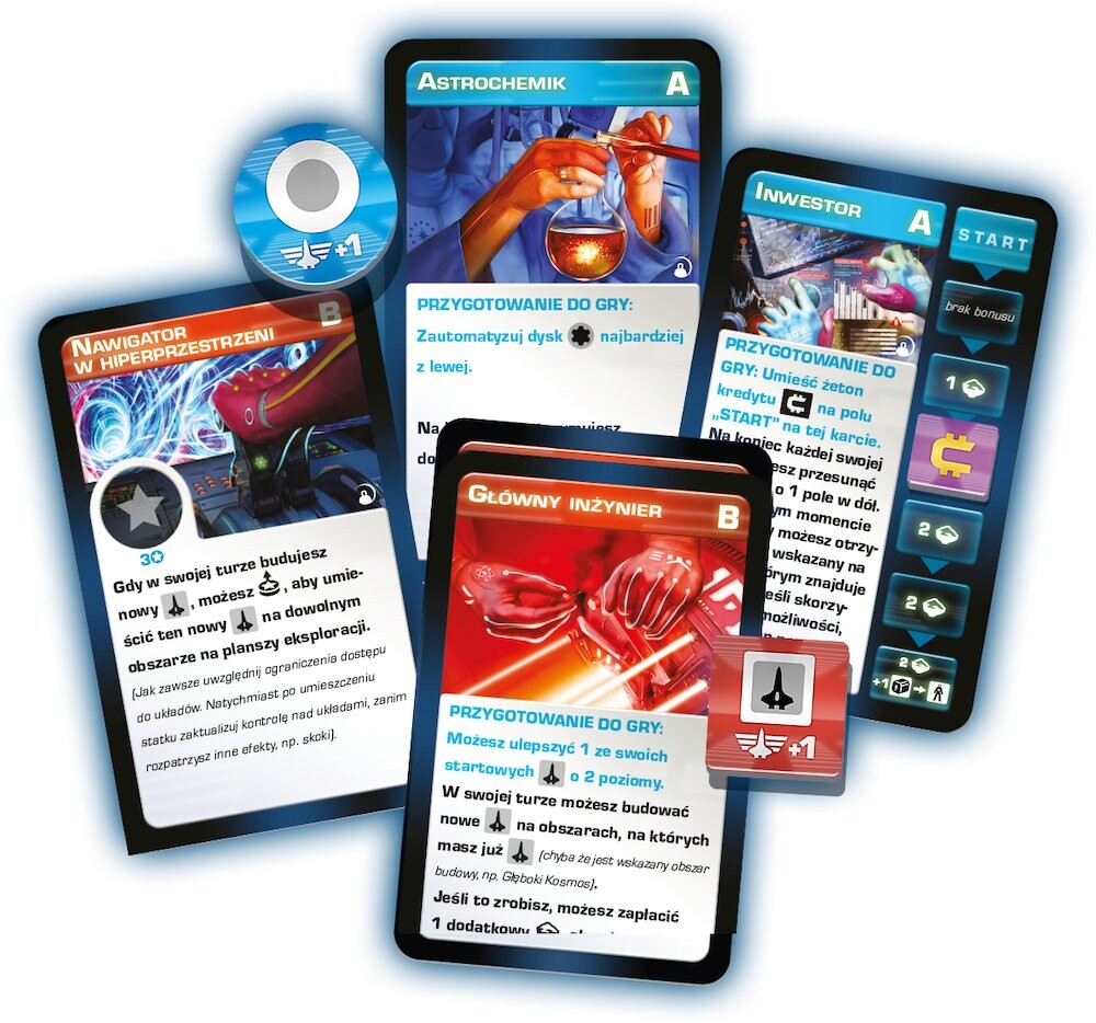 Это масштабная стратегическая настольная игра, в которой мы играем роль лидеров фракций, ищущих новую штаб-квартиру среди звезд. В последующих ходах мы совершаем действия на планшете технологий и добываем ресурсы. Чем больше технологий мы исследуем, тем больше действий становится доступным. Благодаря этому мы можем перемещать космические корабли, колонизировать системы и исследовать новые технологии. Мы можем быть уверены, что человеческий вид справится с новыми условиями и выживет, но это зависит от нас. станет ли наша фракция главным игроком в новую эпоху.Содержимое:
