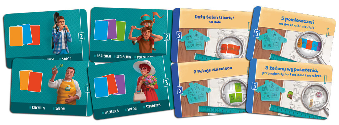 Это задача, с которой вы столкнетесь в дополнении «Семья и друзья». В карточках ваших друзей вы найдете их требования к планировке комнаты. Завершите их, чтобы получить дополнительные очки. Нет ничего прекраснее в жизни, чем слова «молодец», услышанные после удачного ремонта!Рассмотрите сложные конструкции. (Дополнительные правила: Планы строительства)