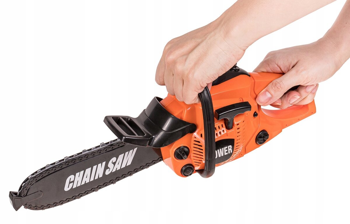 Бензопила для детей даже заводится как настоящий b> ! После включения игрушки кнопкой ВКЛ/ВЫКЛ потяните пусковую ручку сбоку и затем нажмите переключатель вращения в ручке. После выполнения этих действий цепь в игрушечной бензопиле начнет вращаться, а игрушка начнет издавать реалистичные звуки двигателя. Игрушечная моторная пила развивает воображение ребенка и дает ему почувствовать себя взрослым кто делает важную работу. Замечательные и творческие развлечения с бензопилой для детей разовьют интересы каждого маленького лесоруба. Поворотная цепь