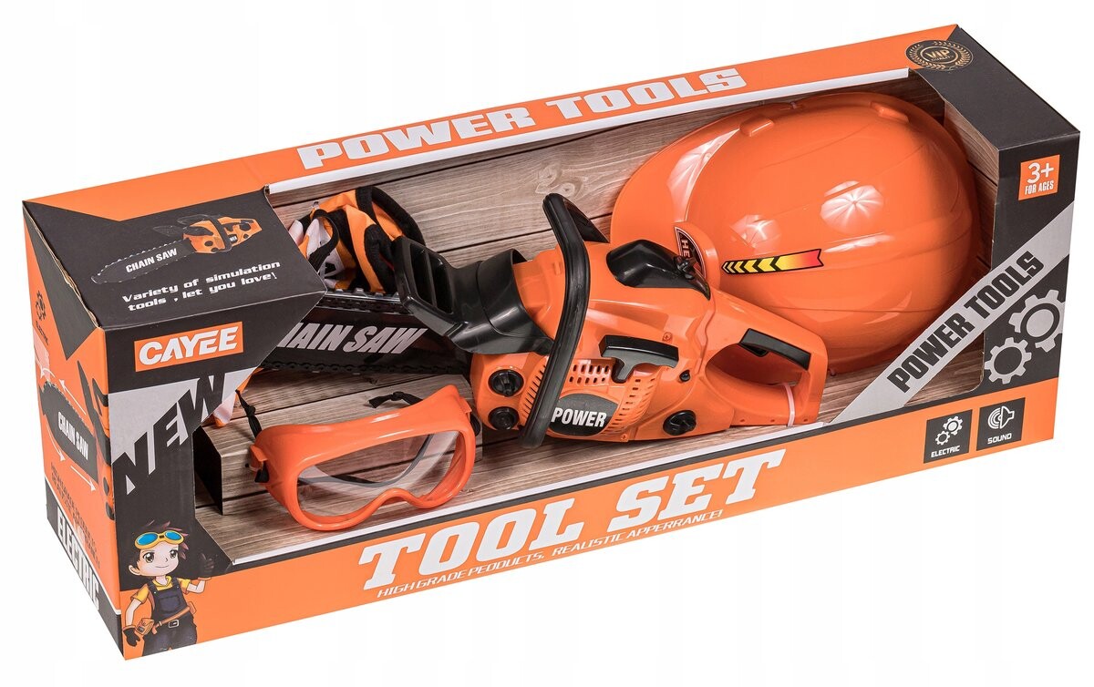 Безопасная резиновая цепь вращается, добавляя реалистичности играм вашего малыша. Включение пилы